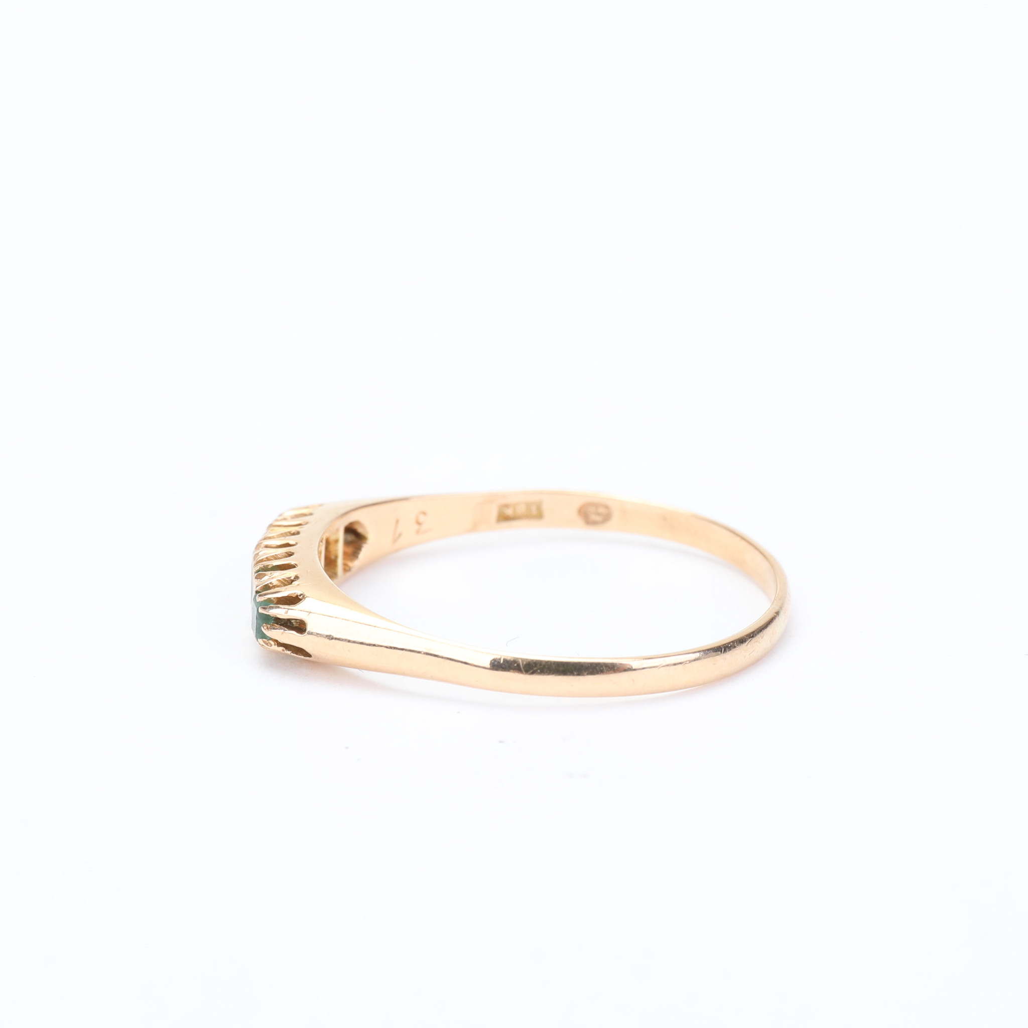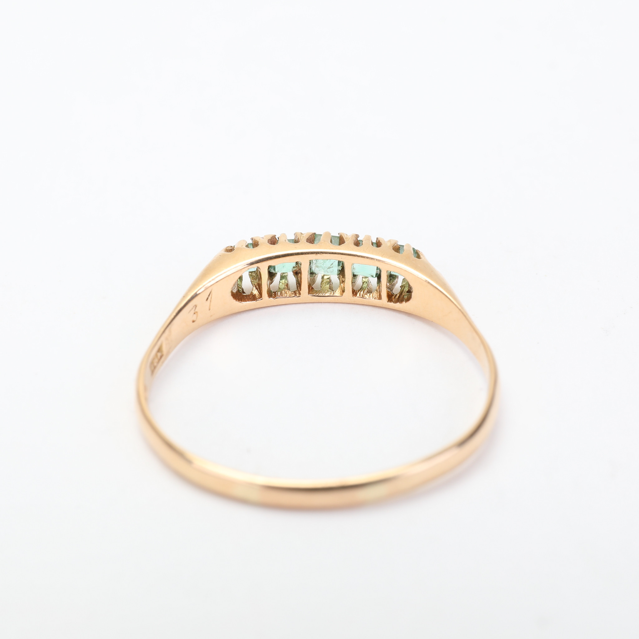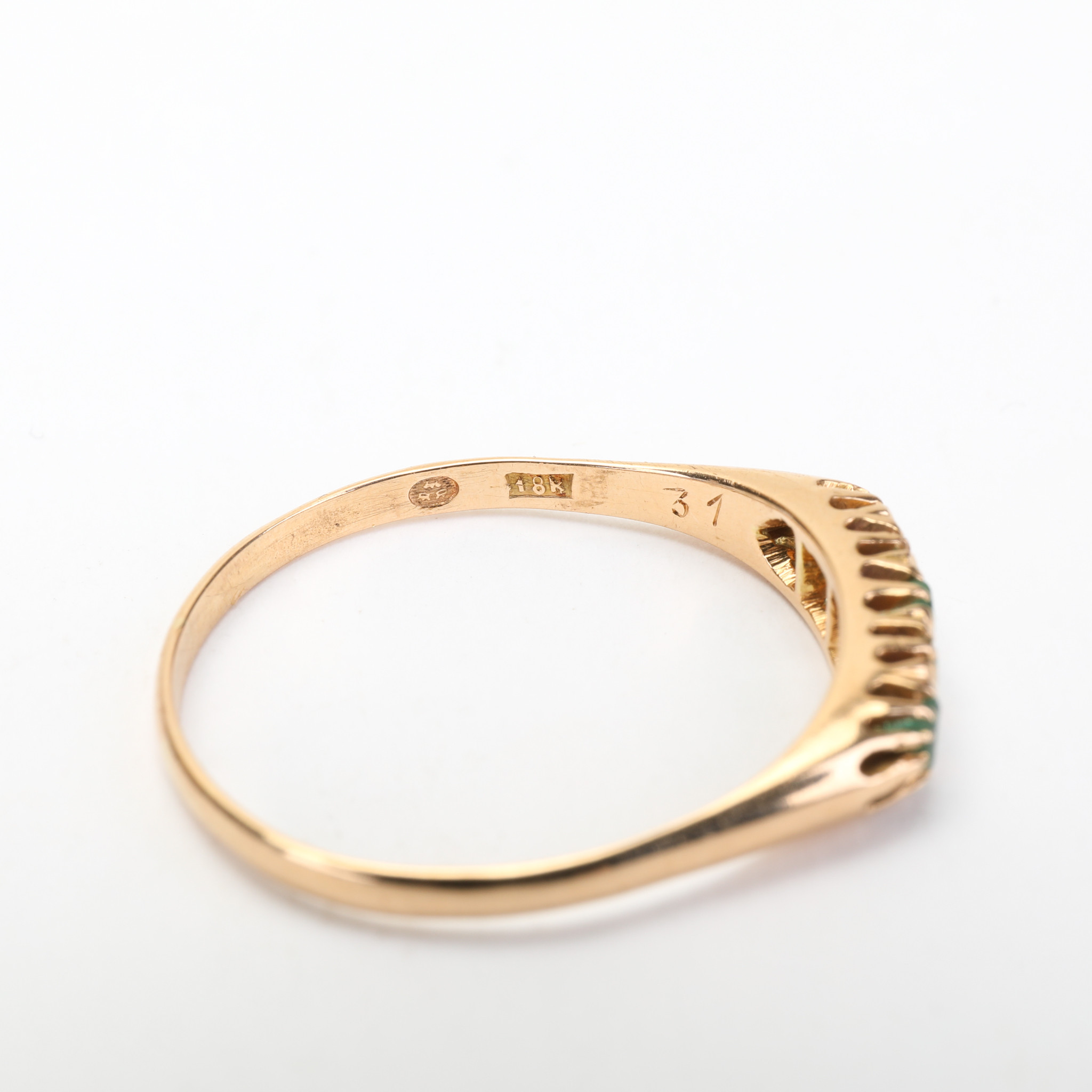 2990153. RING, 18k, 5 st rektangulära smaragder, vikt 2,40 gram.
