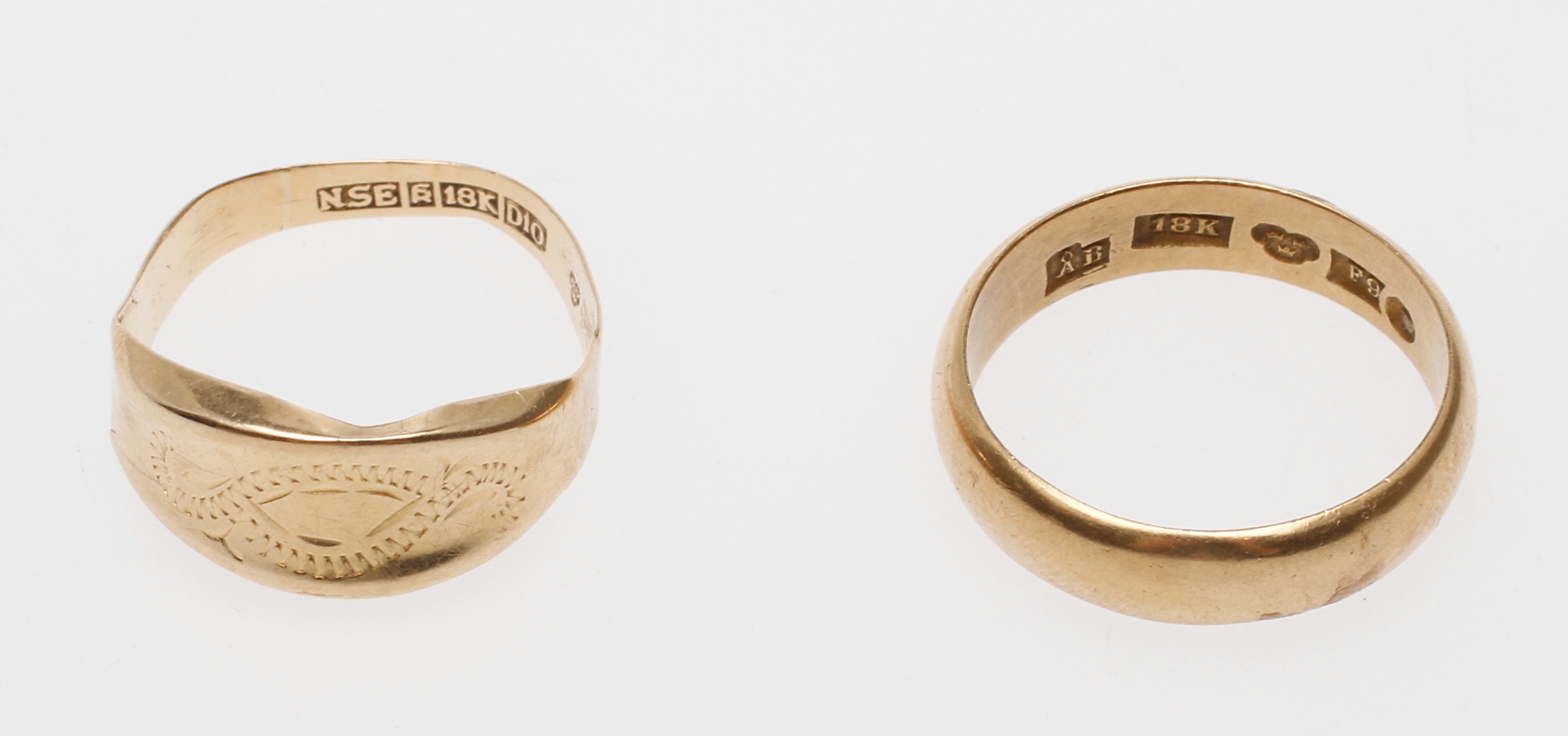 299211. RINGAR, 2 st, 18k guld, vikt ca 5,5 gr.