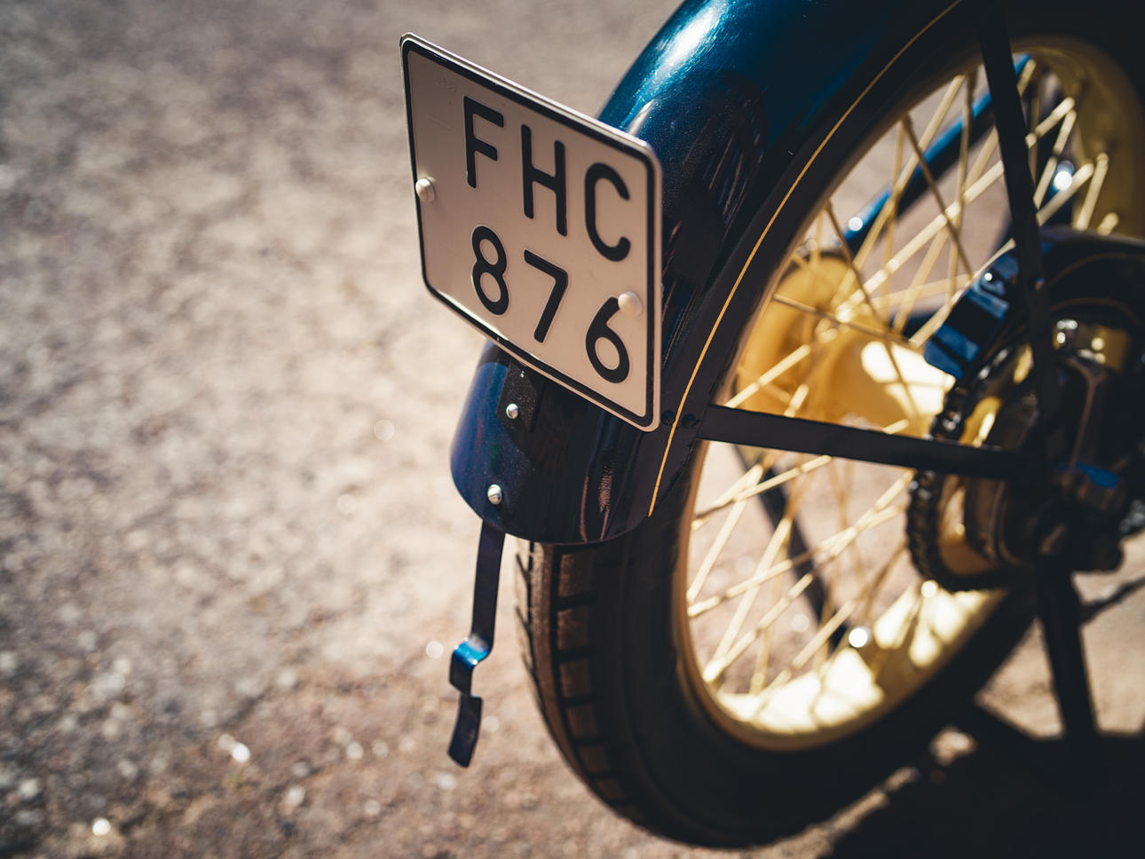 Has old pre-registered Swedish title but vehicle is no longer registered. Frame number 2722 on steering head matches identification number on old Swedish title.