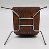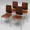 Stapelbara stolar i formpressad brunbetsad plywood, kromade ben.