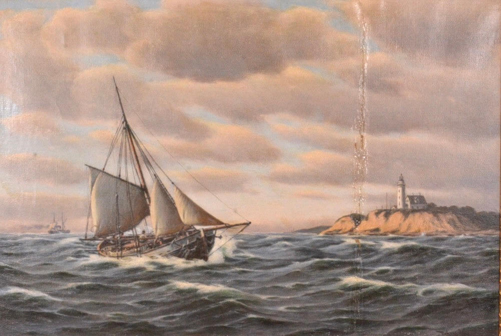 Havsbild med båt, signerad och daterad 1927, 66x95 cm.