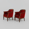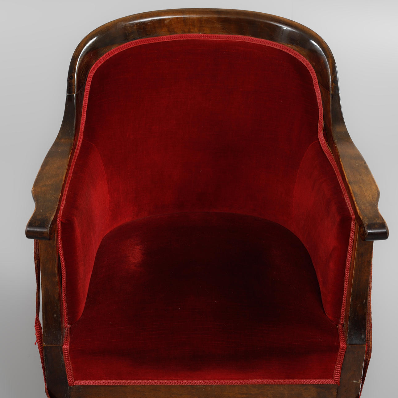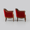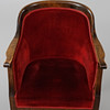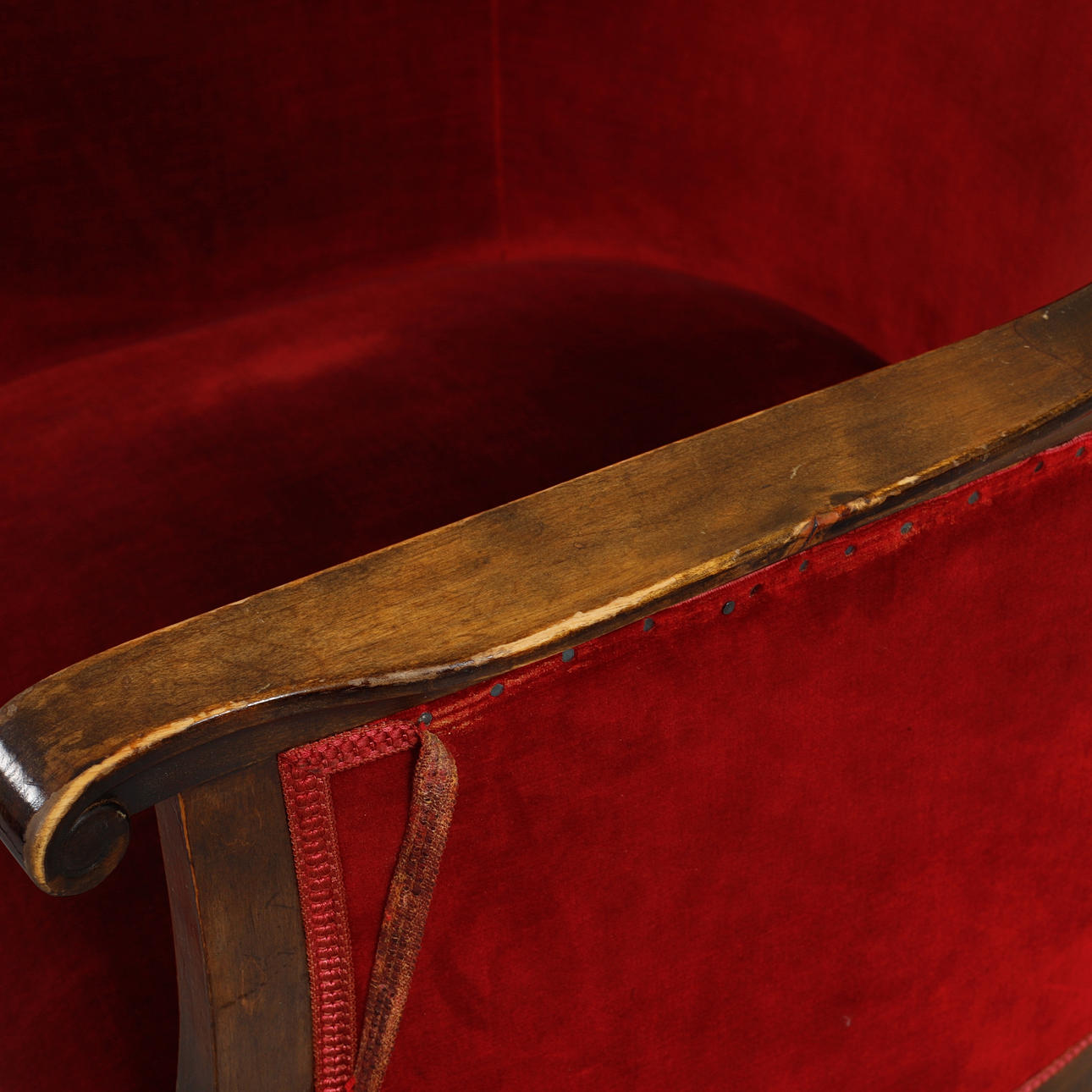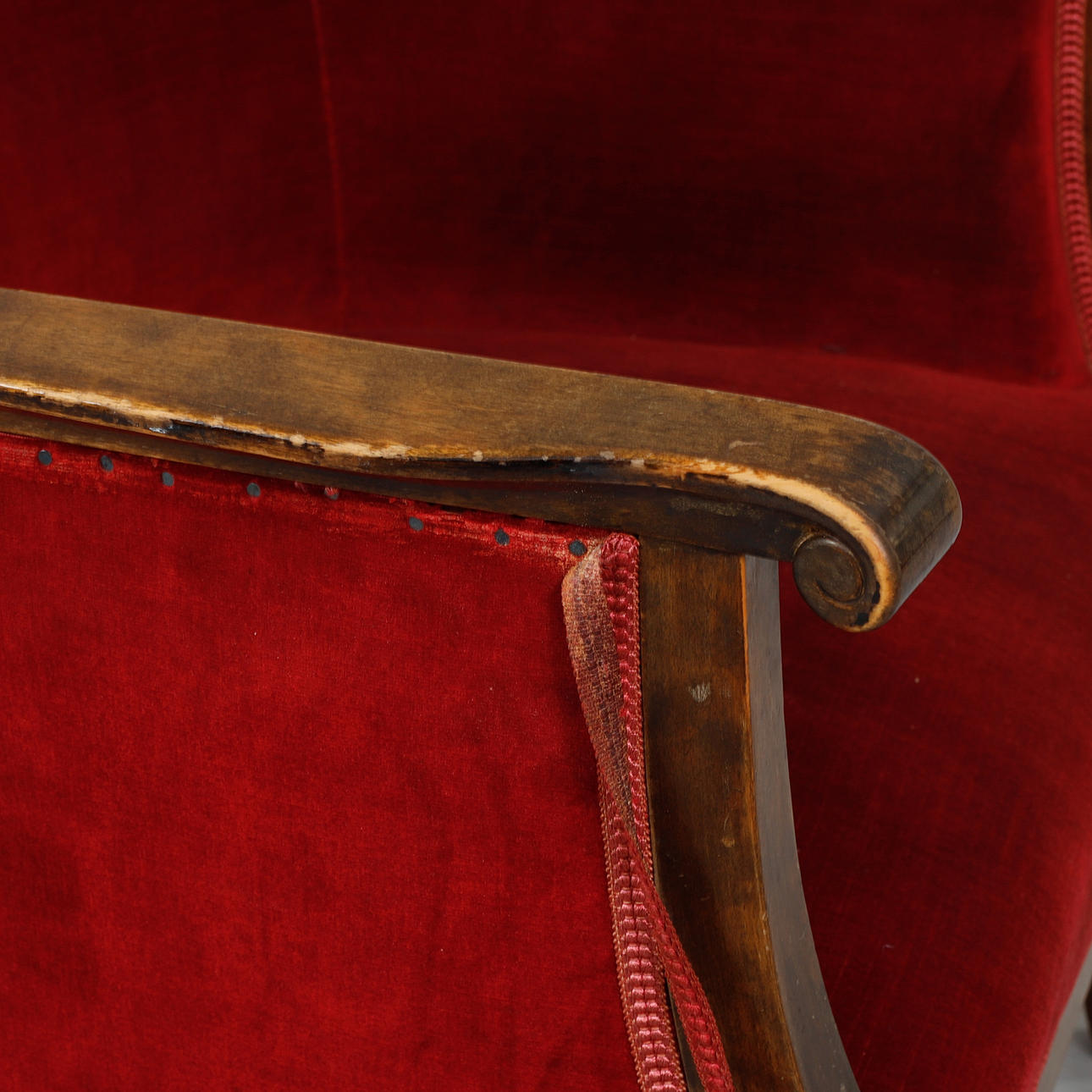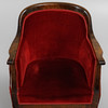 Betsad björk, stoppade sitsar och ryggar i mörkröd plysch. sitthöjd ca.