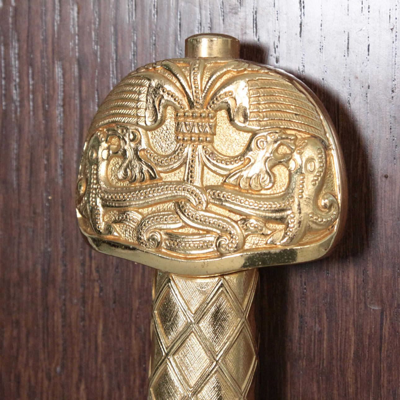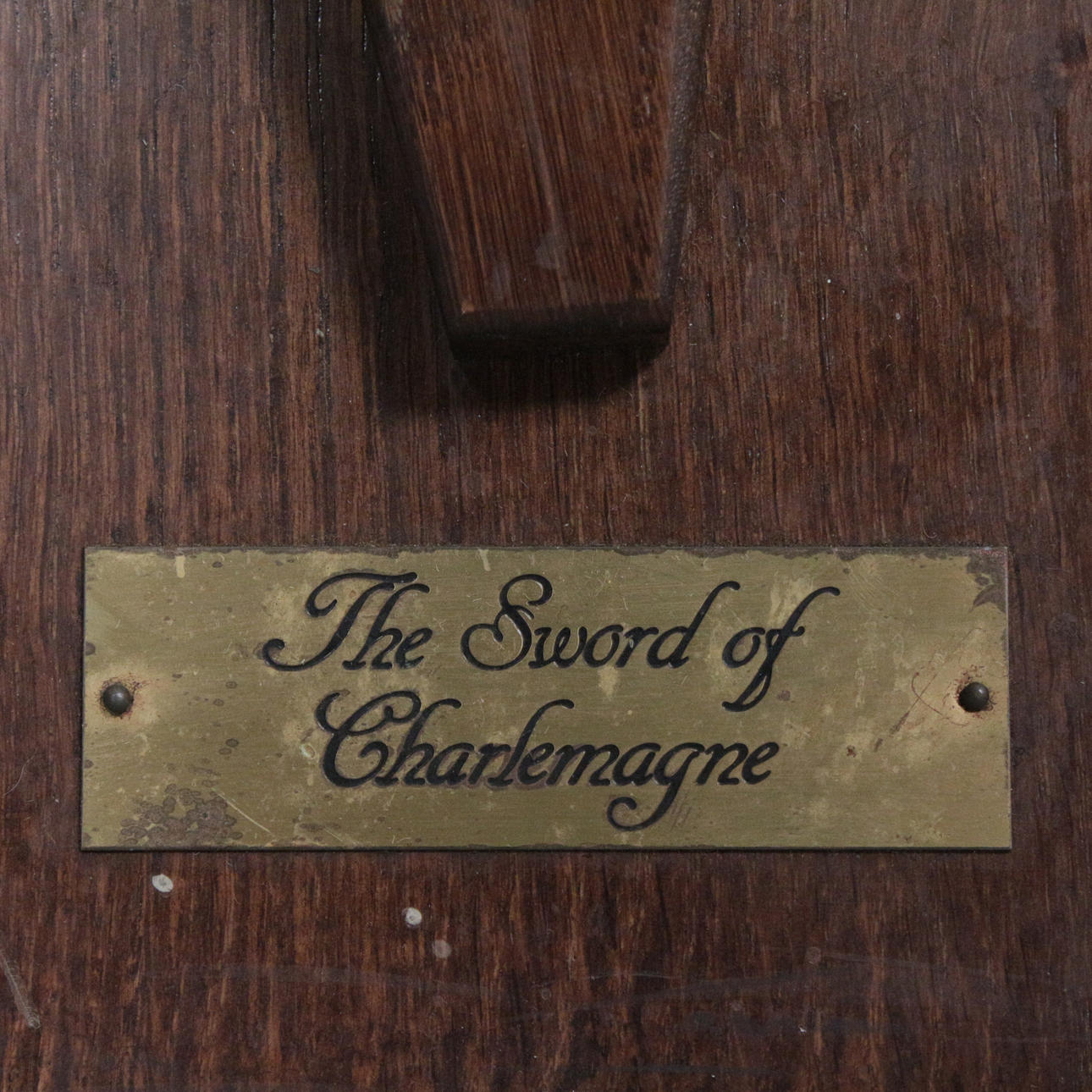 Franklin Mint, ”The Sword of Charlemagne”, trogen kopia på träpanel, bladet är tillverkat av härdat stål, handtaget är 24 karat guldpläterat,