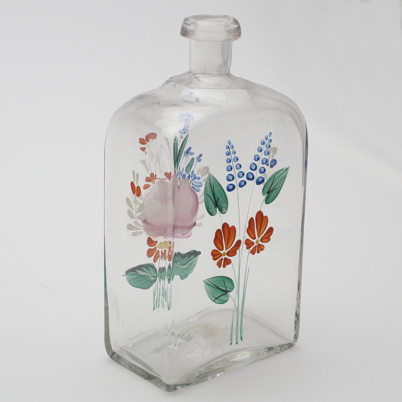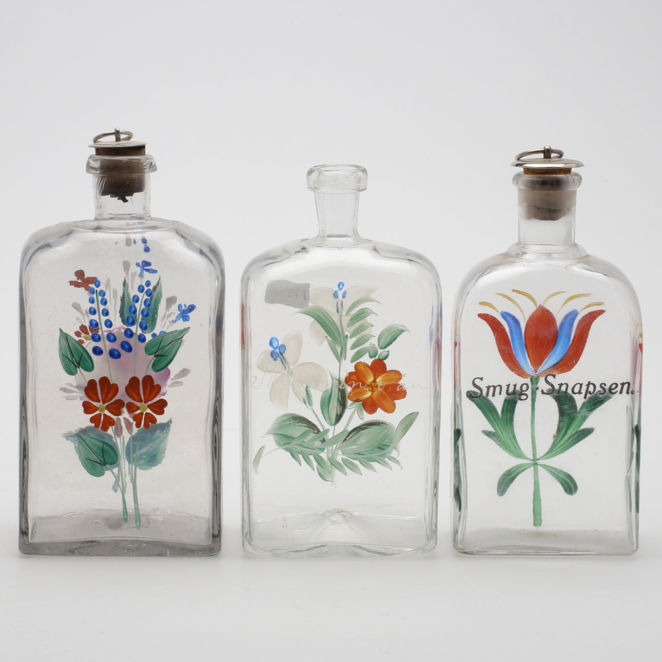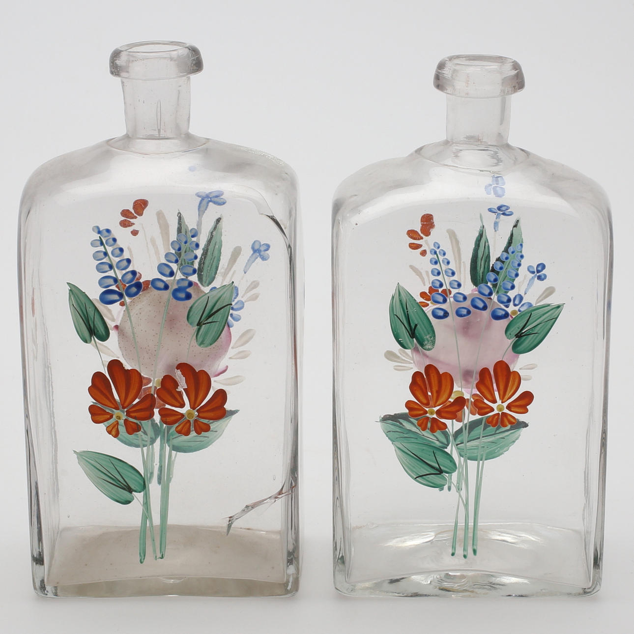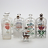 Delvis handmålade. Medföljande 4 st korkar. 1 st med Mary Gregory dekor. Höjd 13 - 22 cm.