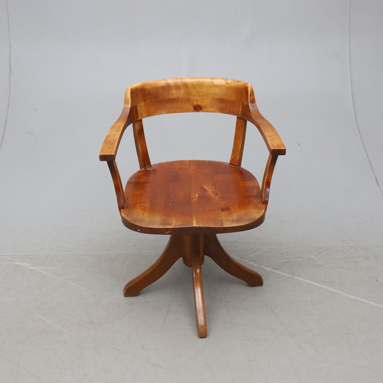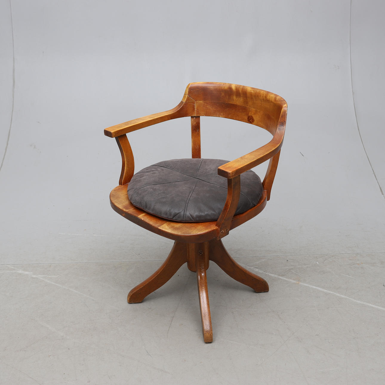 Snurrbar, höj och sänkbar. Medföljande dyna i tyg. Max sitthöjd ca 60cm, min. sitthöjd ca 42cm.