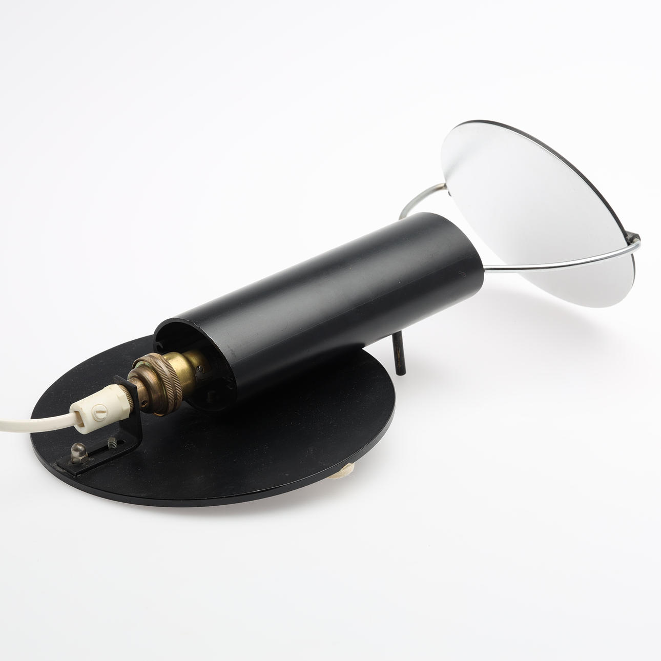 Svartlackerad plåt. Ställbar reflektionsdel. Längd ca 35cm.