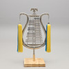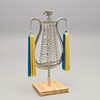 Vitmetall. Monterad i träsockel. Höjd exkl sockel 92 cm.