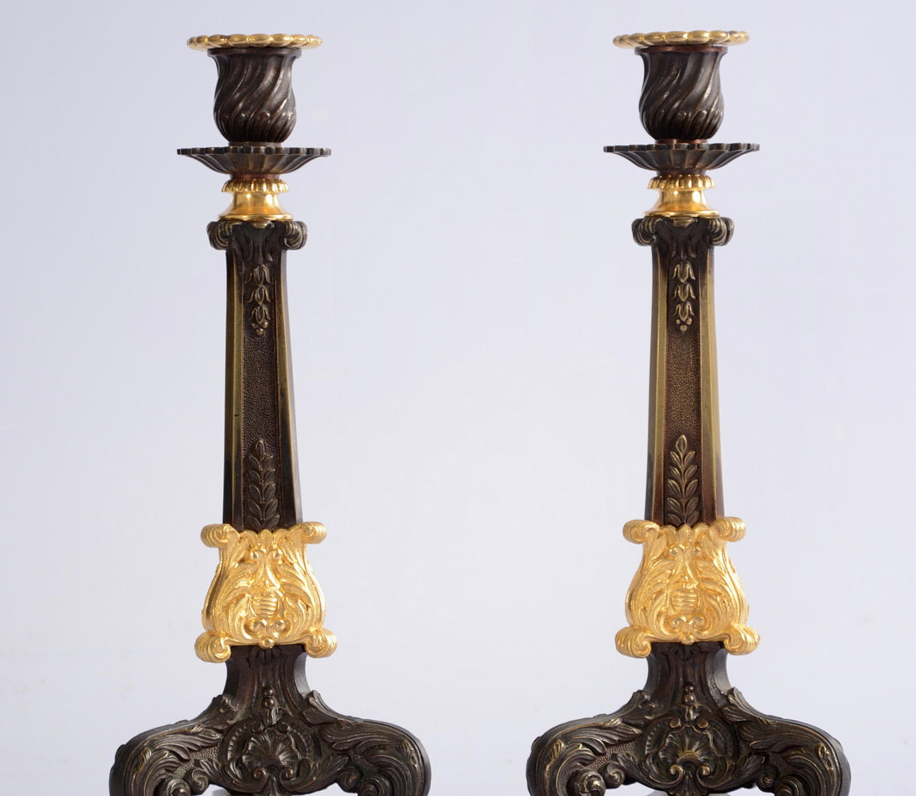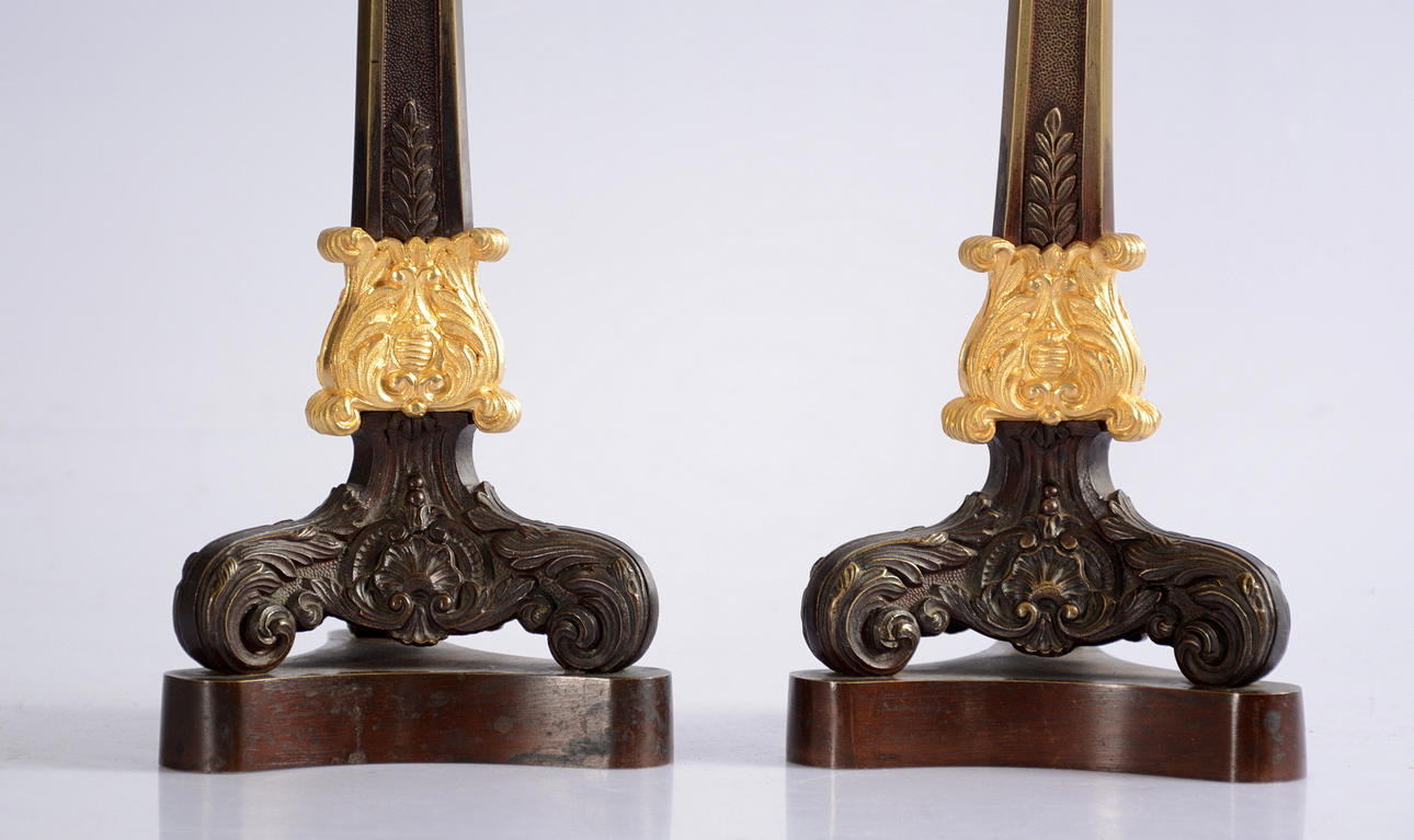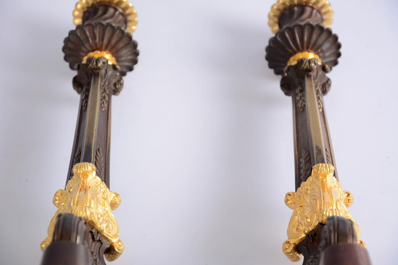 299927. LJUSSTAKAR, 1-par, brons, senempire.