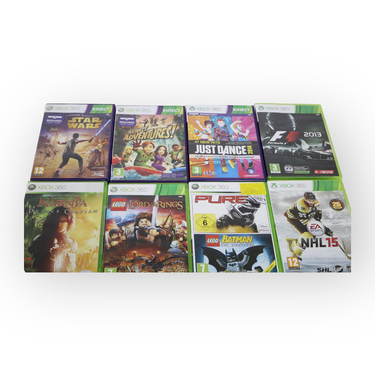 Xbox 360, 3 st trådlösa handkontroller, Kinect, 15 st spel, bl.a. Star Wars, mm.