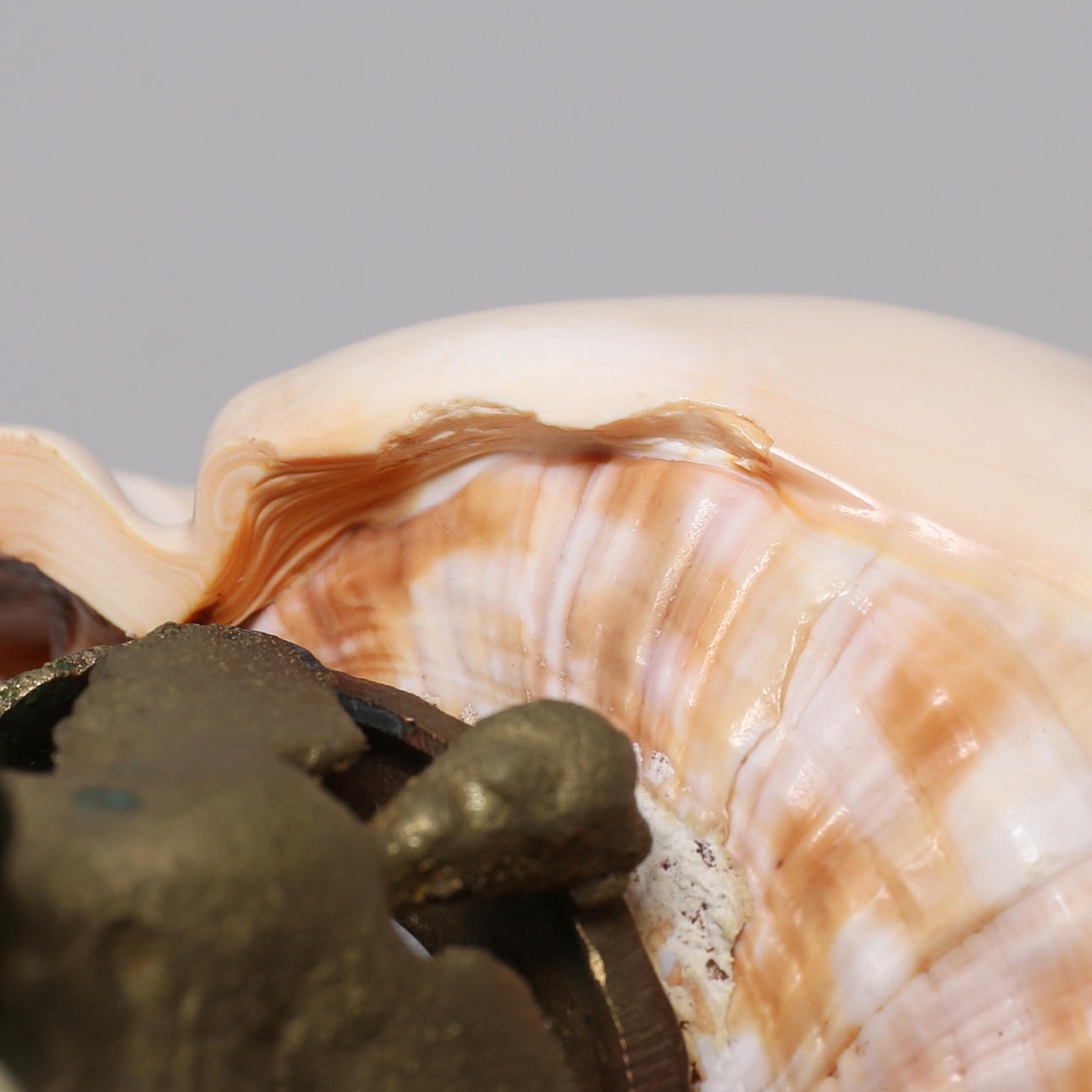 Total höjd, ca 21 cm. Snäckans bredd, ca 11 cm.