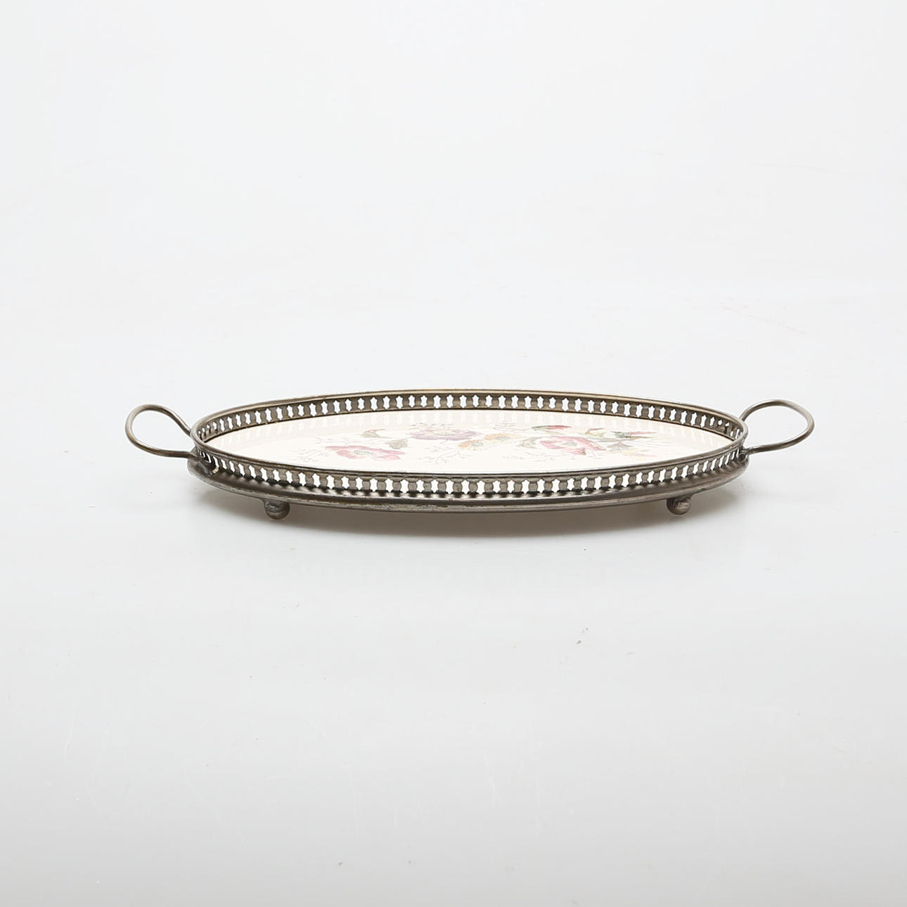 3002807. BRICKA, porslin, med metallkant, sekelskiftet 1900.