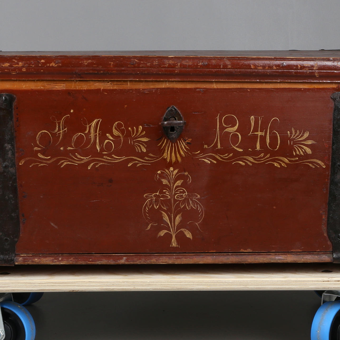 Monogram JAS(?). Originalmålning. Längd 88 cm. Bredd 58,5 cm. Höjd ca 37 cm.
