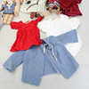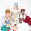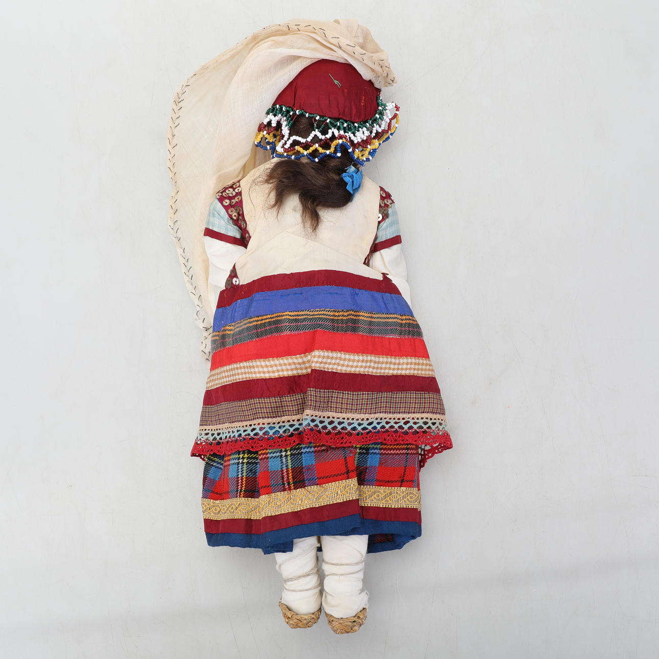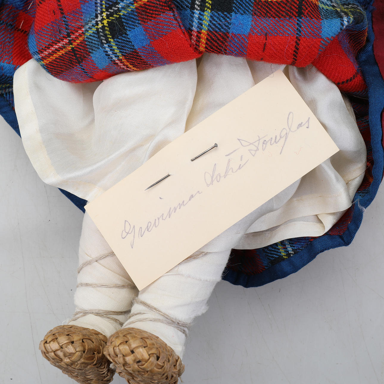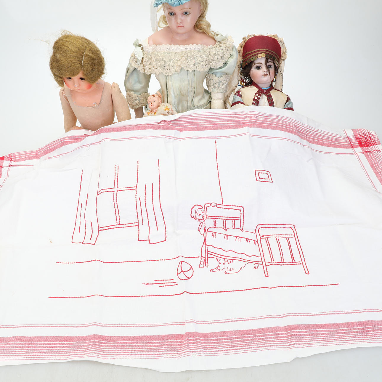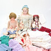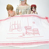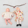 Kläder, lakan och små plastdockor medföljer.