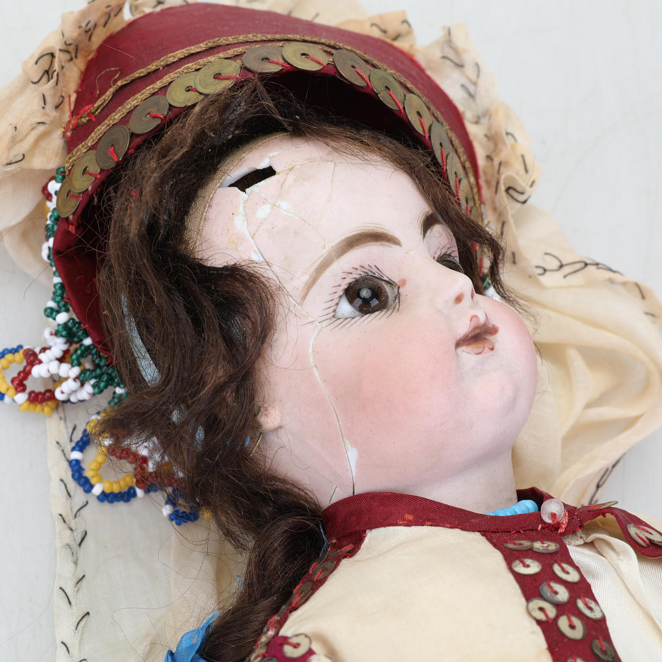 Docka i porslin, längd ca 40 cm