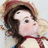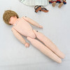 Stoppad docka med huvud i plast, längd ca 48 cm