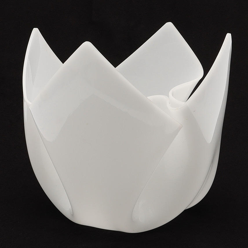Frostat plexiglas i skål av näsduksmodell. Diameter 23 cm, höjd 22 cm.
