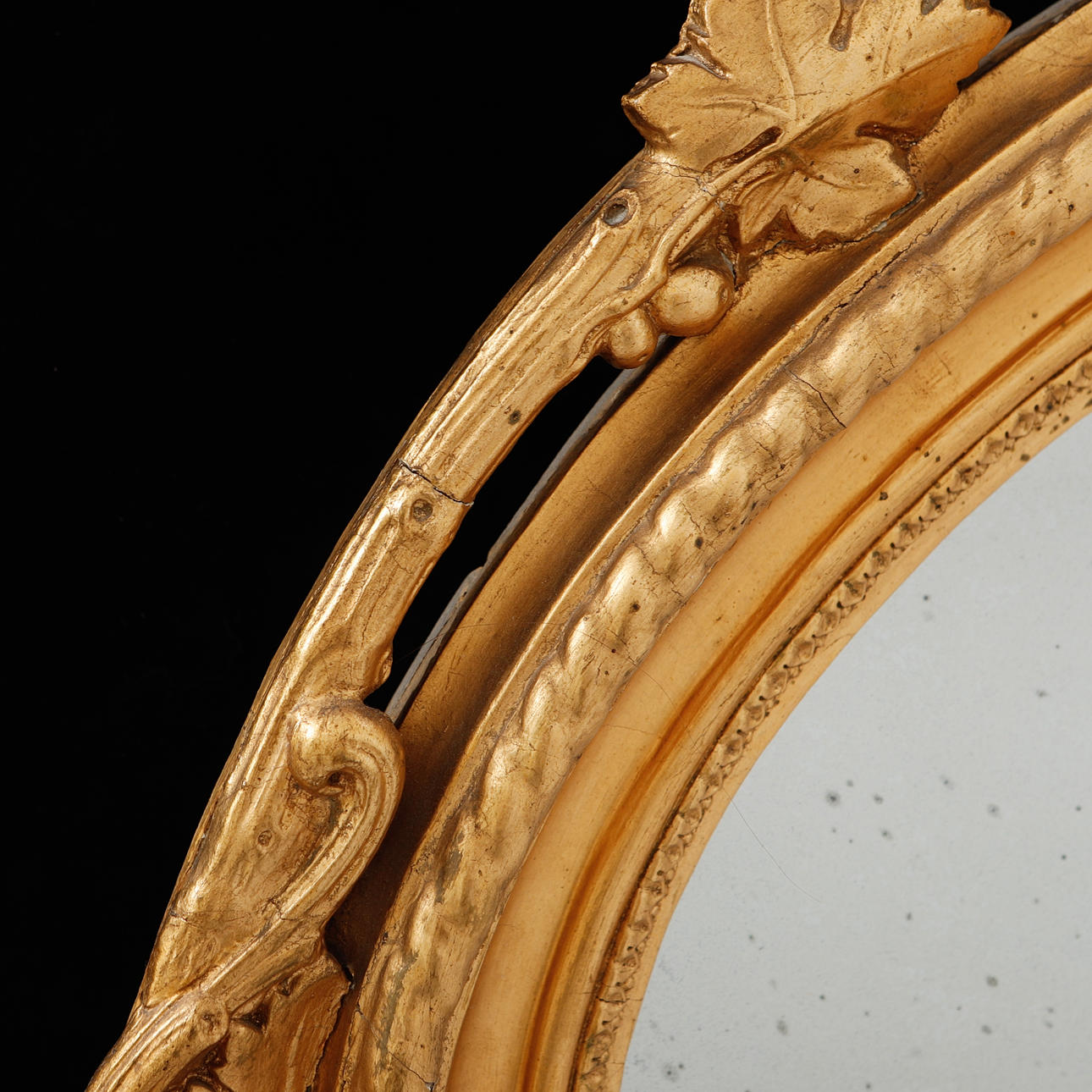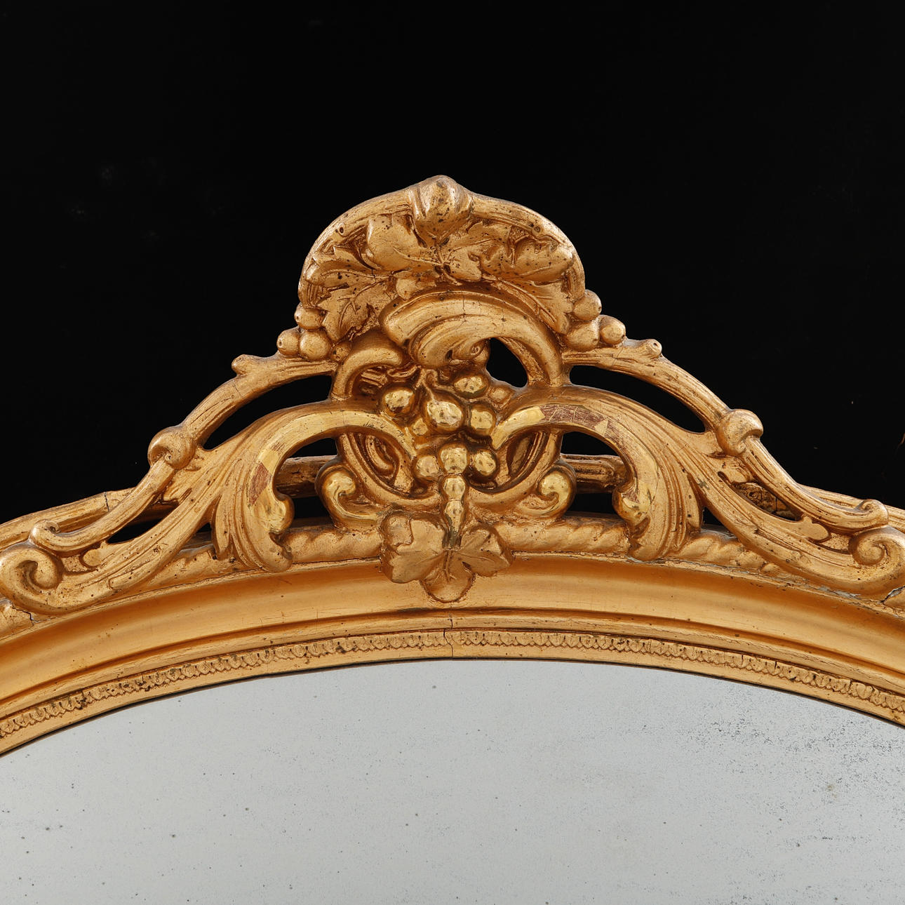 Guldfärgad ram med dekor av knäckar bladverk. Höjd 70 cm, längd 90 cm.