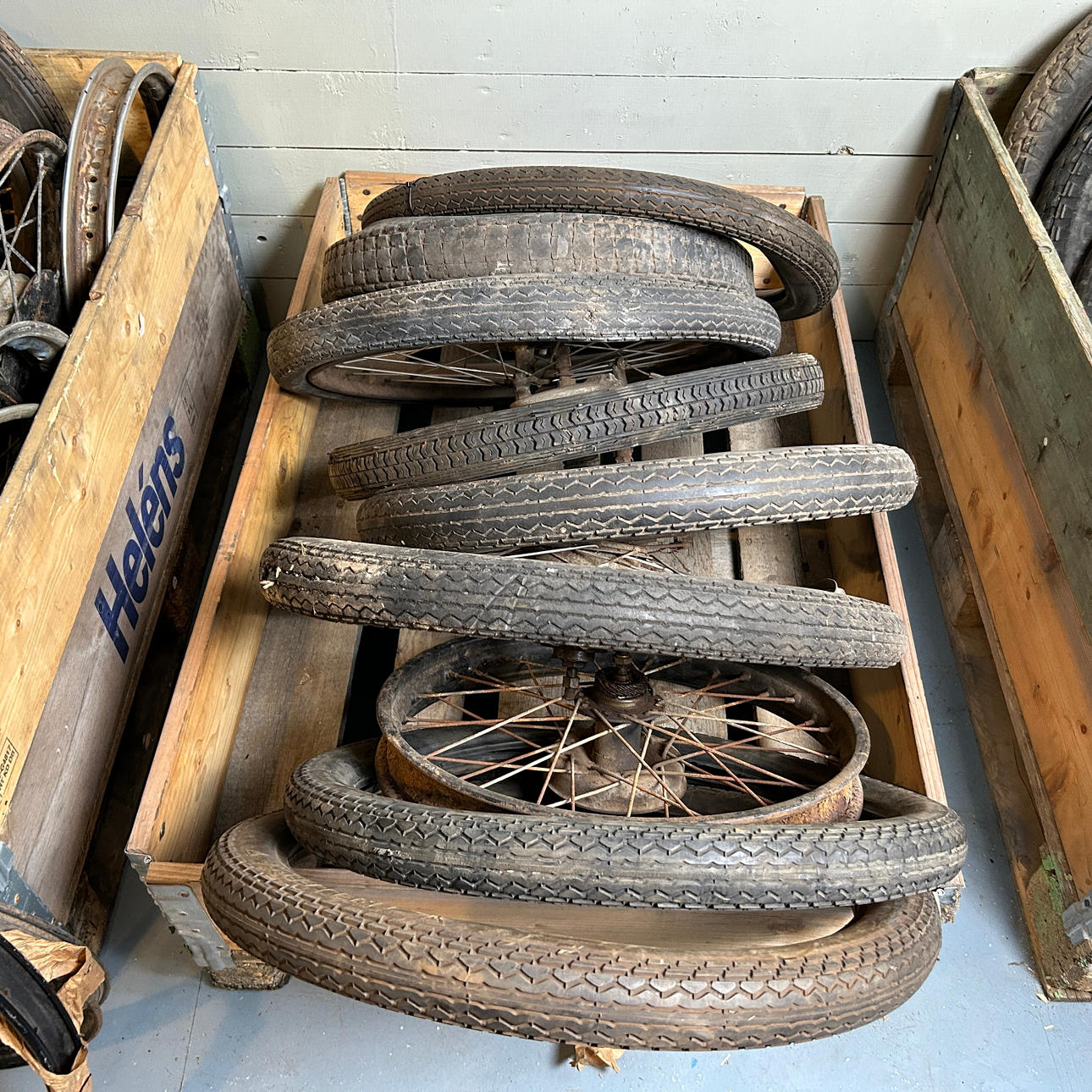 Större parti med däck, fälgar och hjul till "småkubikare".