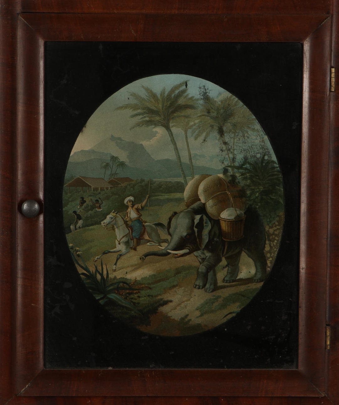 Med scen av elefant. Pendel finns. 78 x 42.