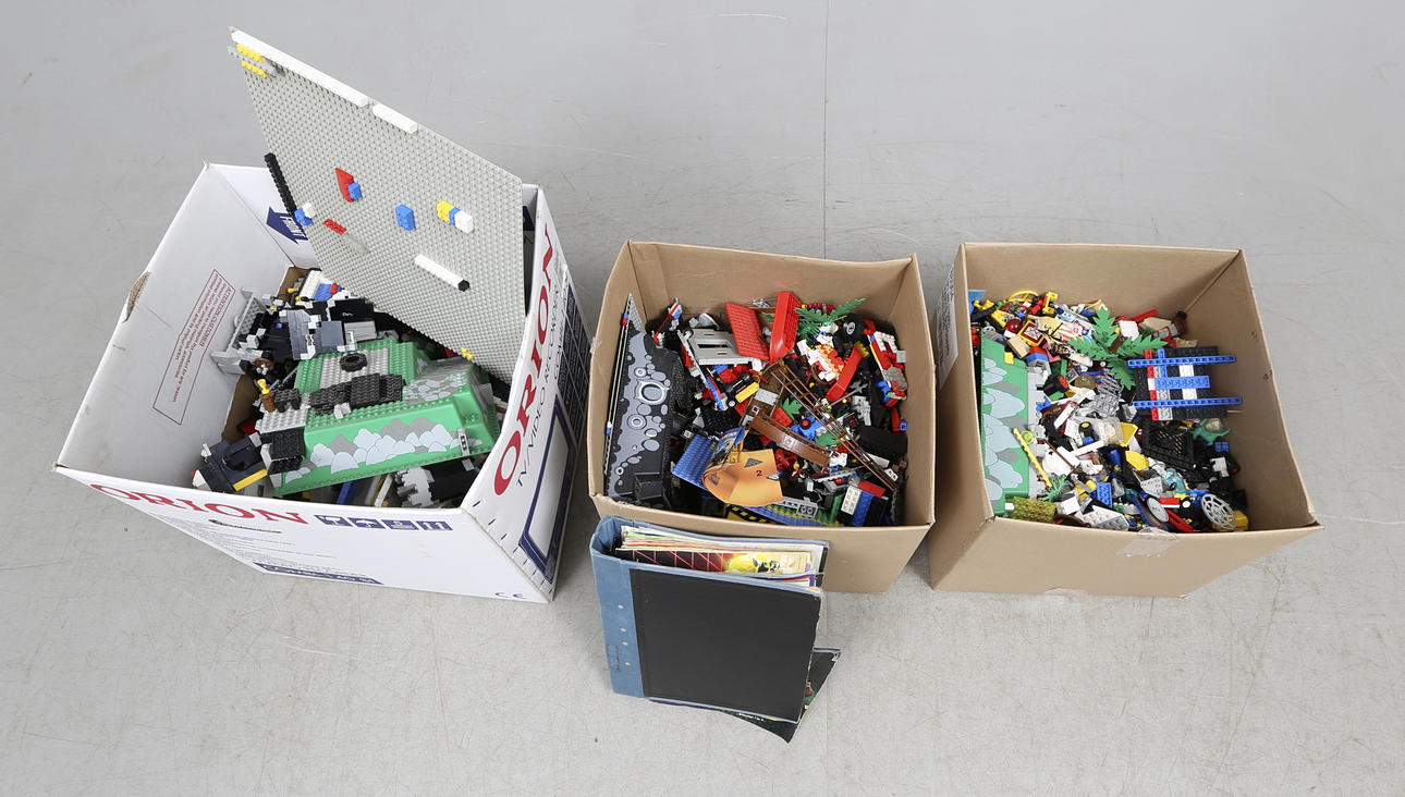 Blandat lego. Några broschyrer med instruktioner medföljer.