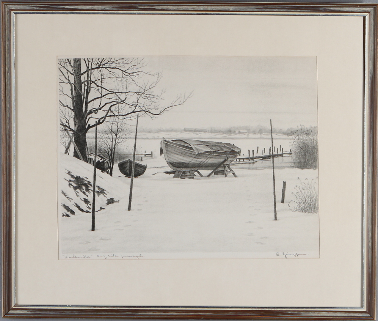 300591. REINHOLD LJUNGGREN. "Vinterviken", litografi, signerad.