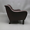 Bruksslitage. Ben med avslag, repor. Skinndynor med slitage, färgbortfall.