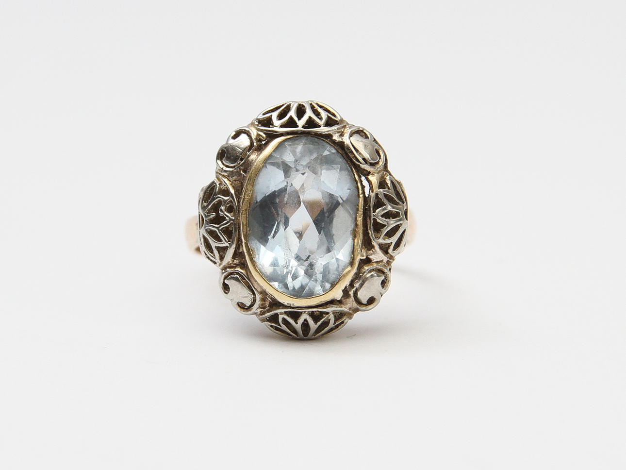 30074. RING. 14k guld med blå sten, ca 4,2 gram brutto.