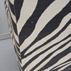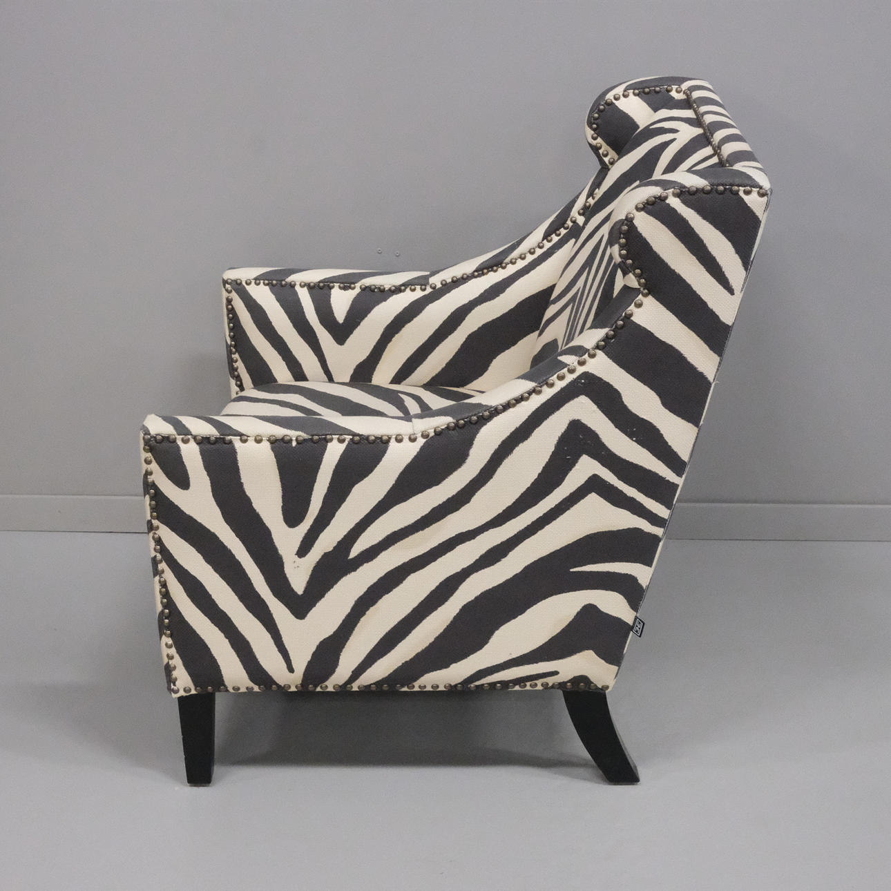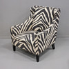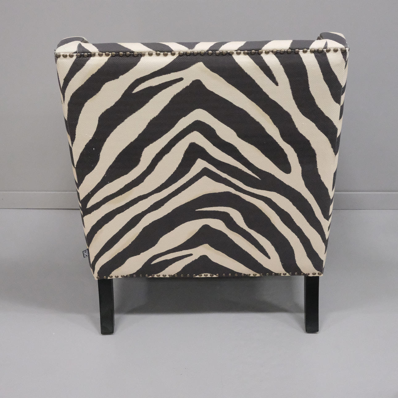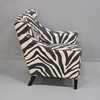 Fåtölj, tygklädsel med zebramönster. Höjd 90cm. Längd 69cm. Djup ca 81cm. Sitthöjd 40cm.