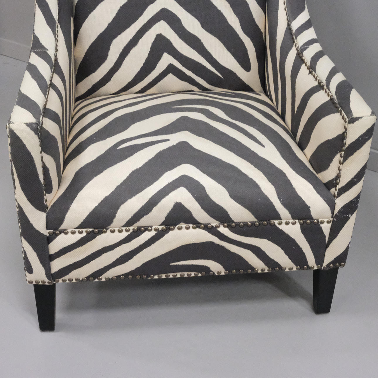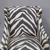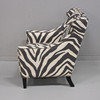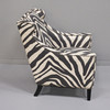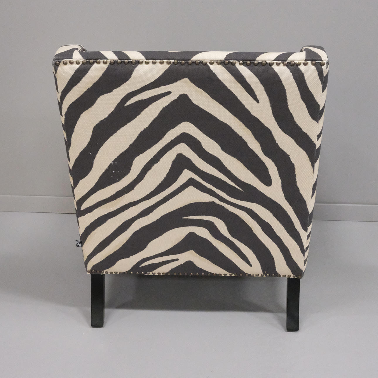 Fåtölj, tygklädsel med zebramönster. Höjd 90cm. Längd 69cm. Djup ca 81cm. Sitthöjd 40cm.
