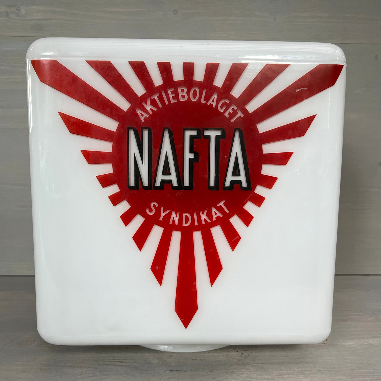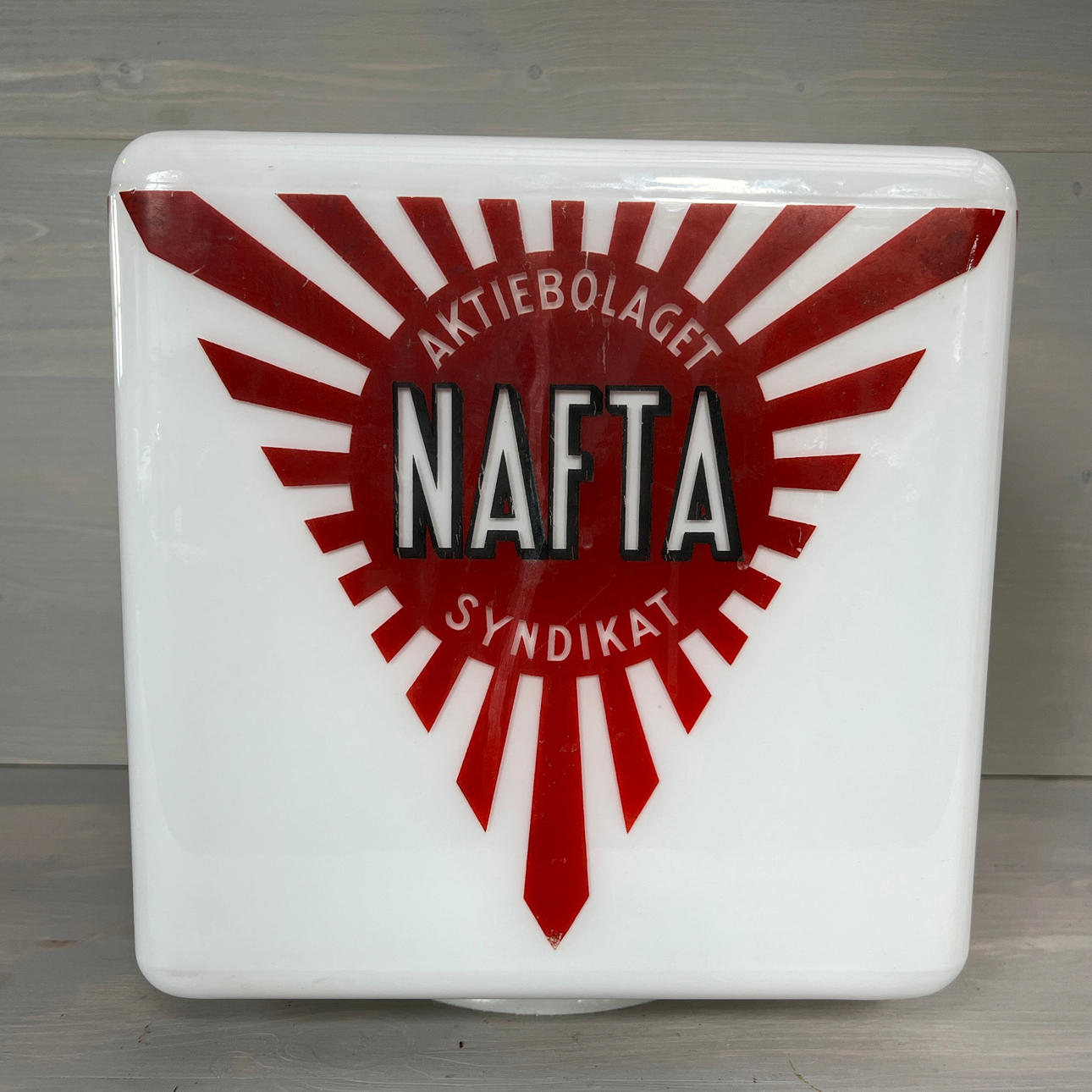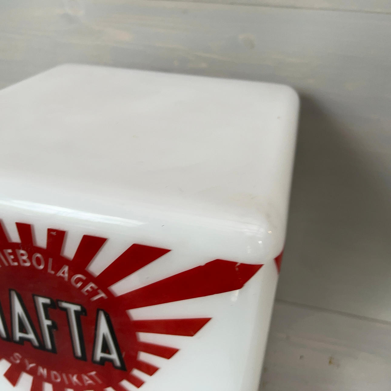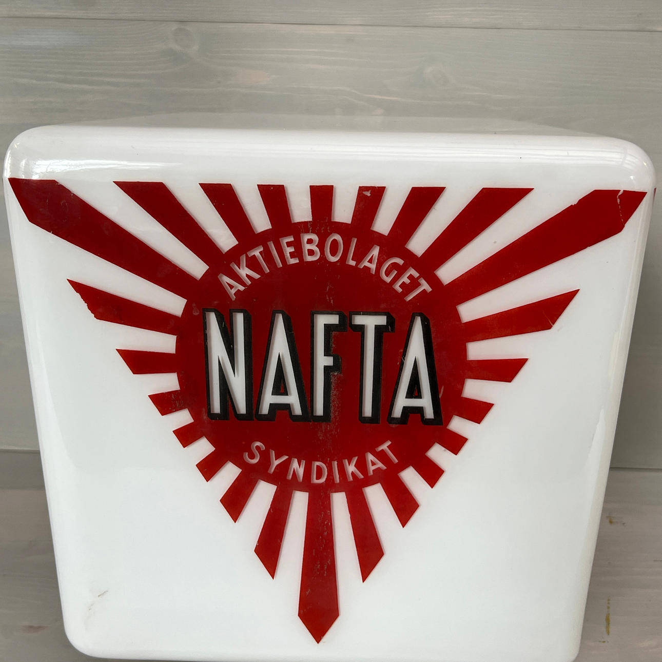 Bruksslitage på logotyp med små färgbortfall.