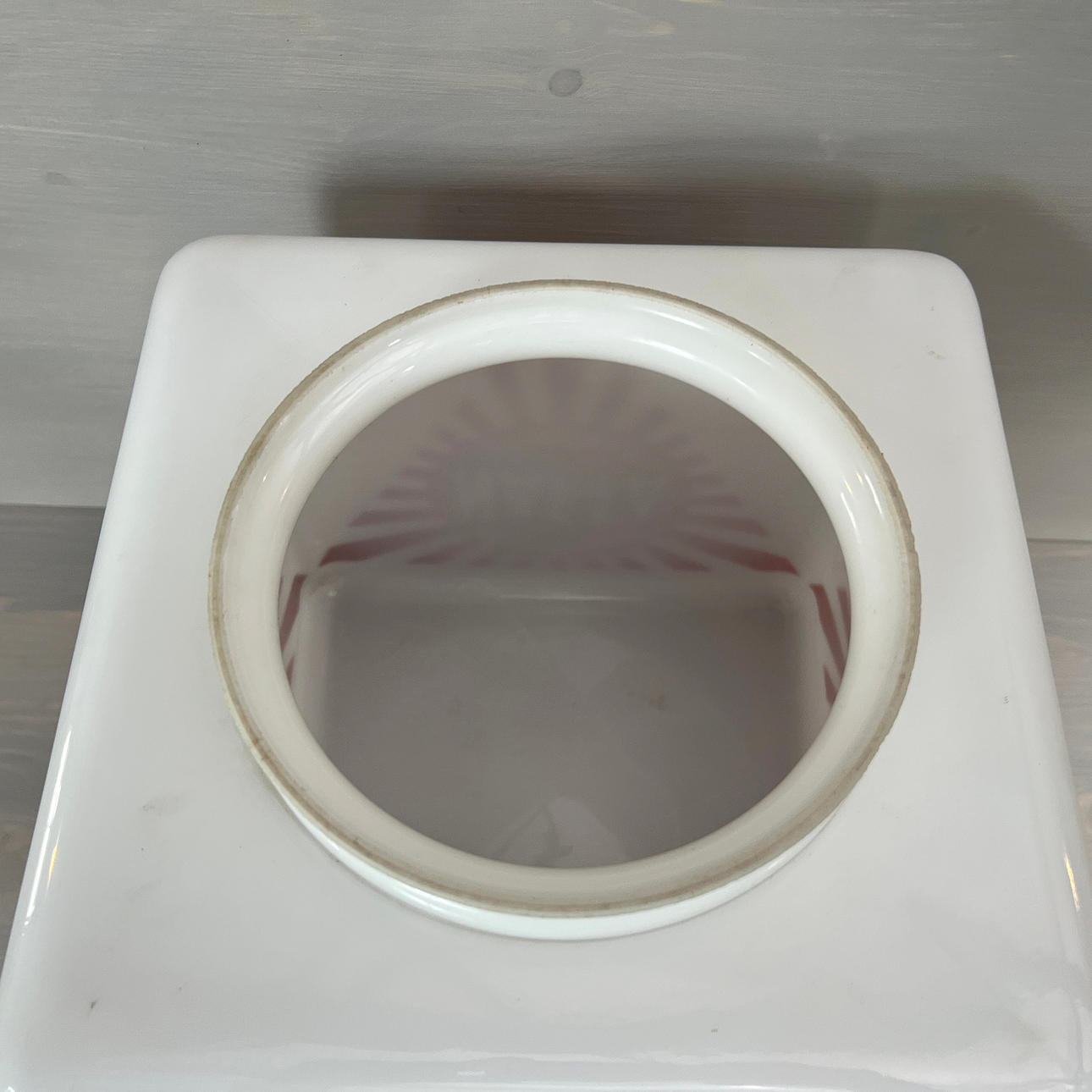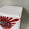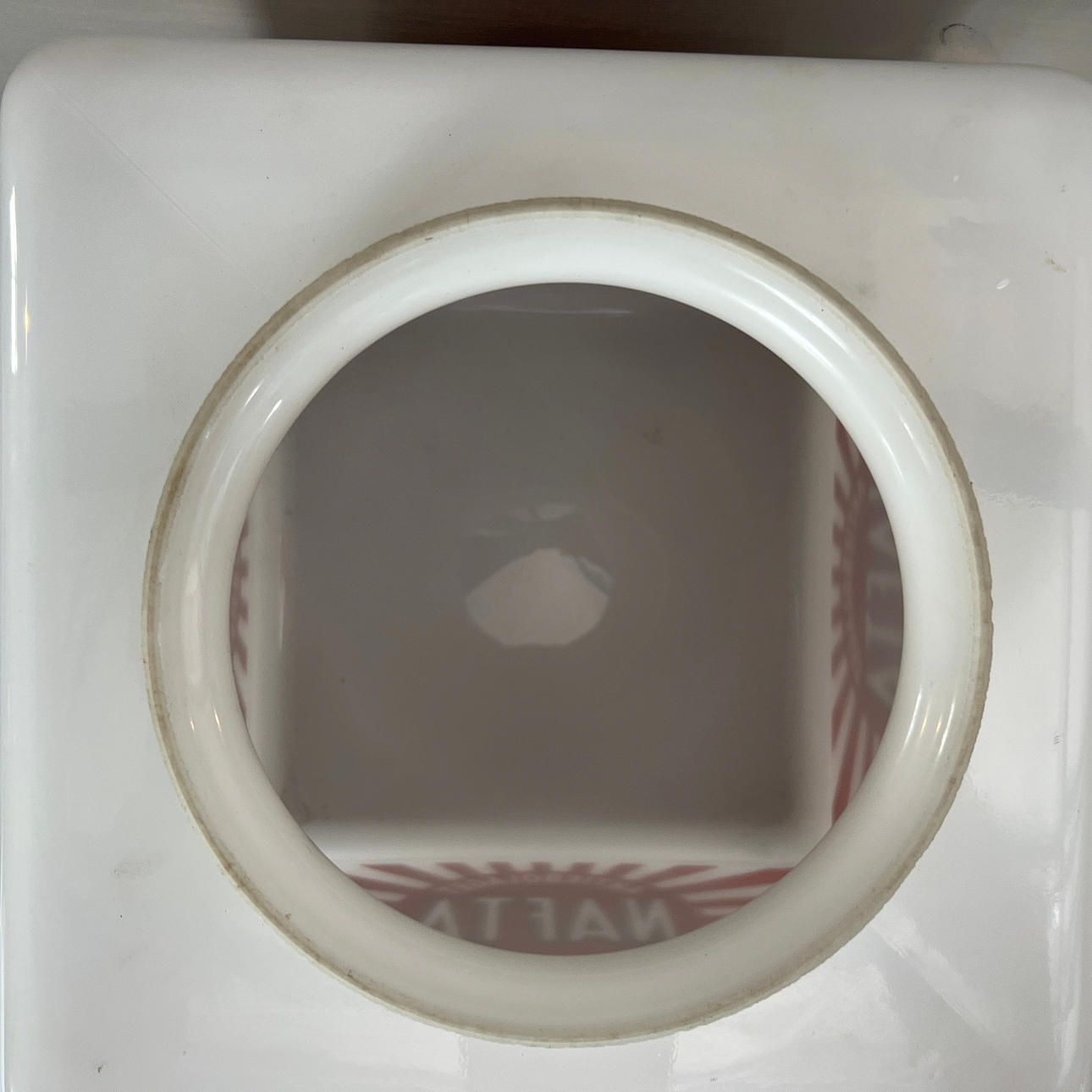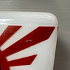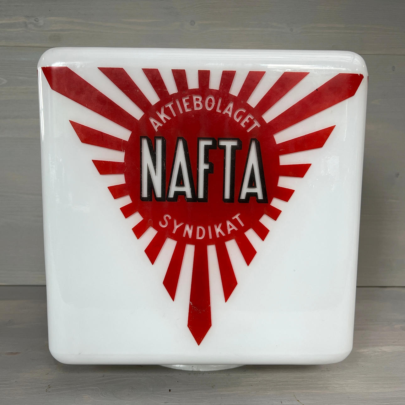Bruksslitage på logotyp med små färgbortfall.