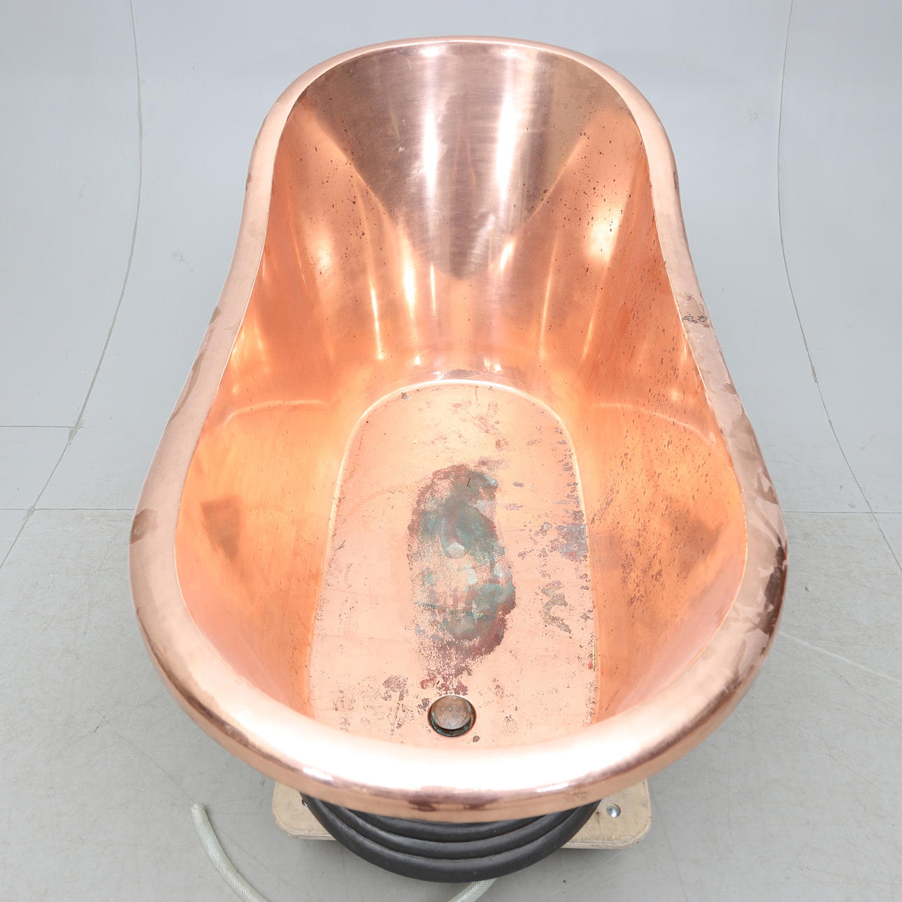 Kopparbadkar, längd ca 165 cm, bredd ca 82 cm, höjd ca 81 cm.