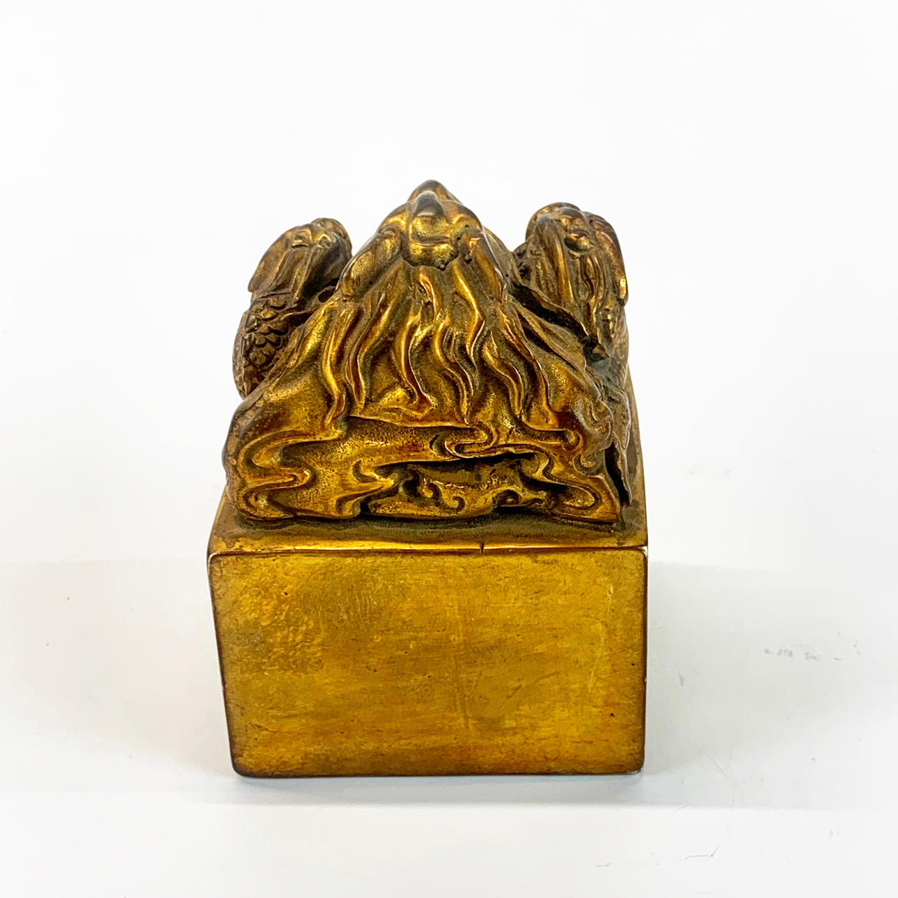 SIGILL, kinesisk förgylld brons, Kejserlig stil, 8 x 8 x 10cm.