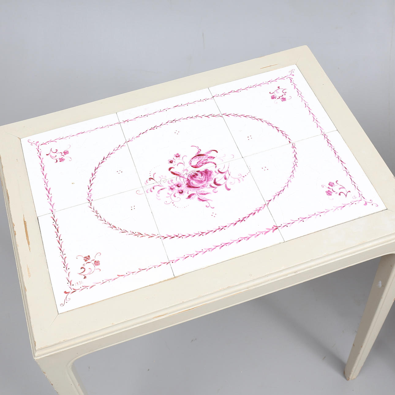 Bord med kakelplattor: höjd 60, bredd 39, längd 54.