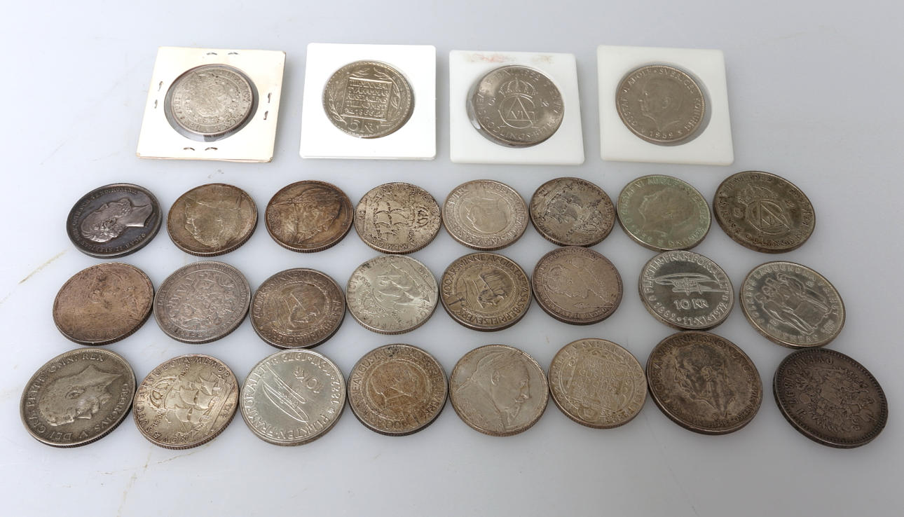 6 st 5 kronor, silvervikt mellan 7,2 - 9,15 gram.