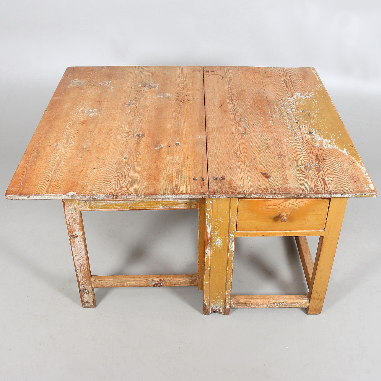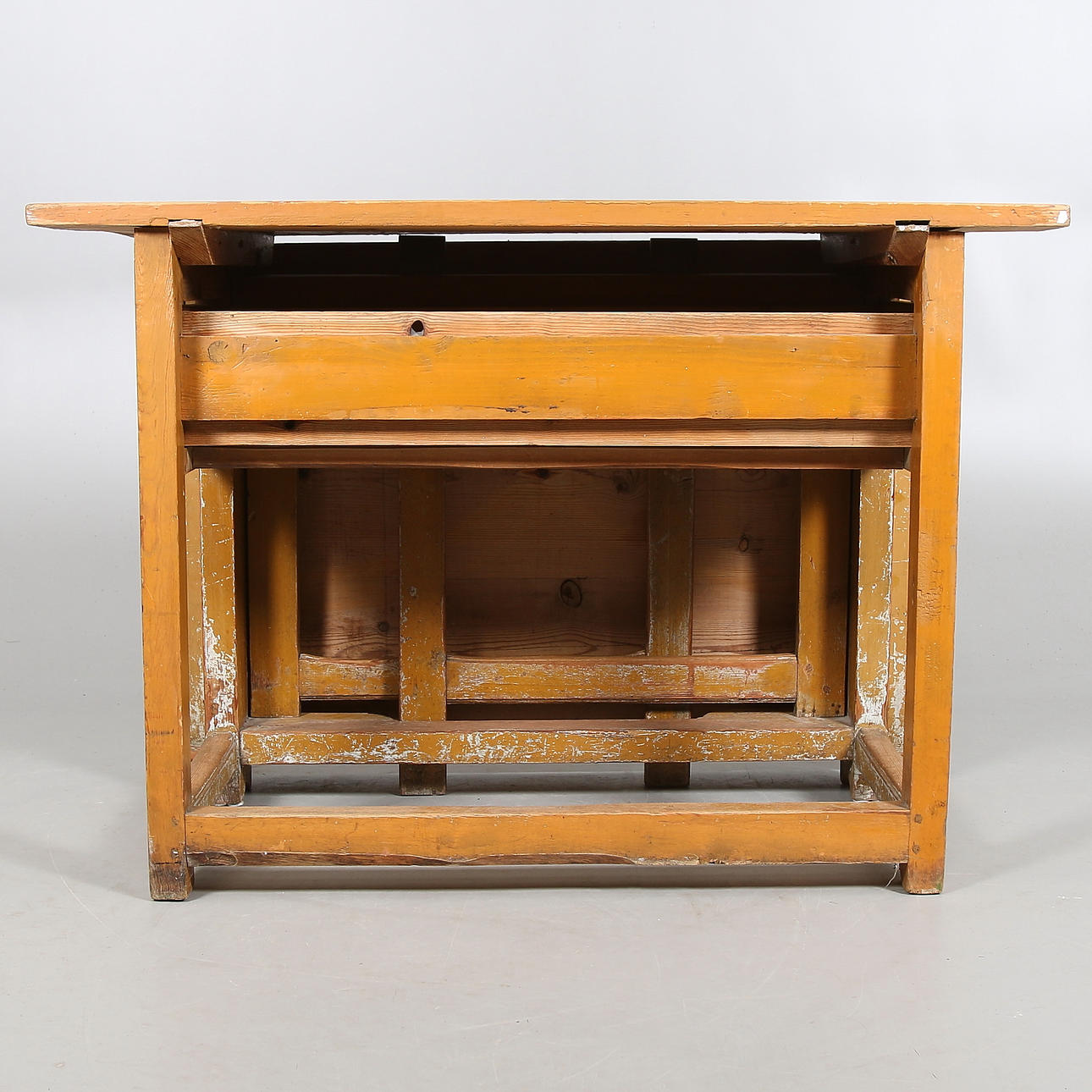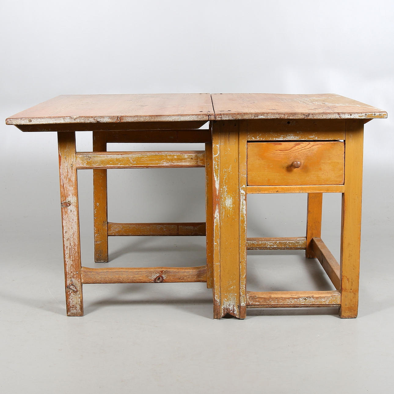 Bord med ett slag och en låda. Längd 58,5, med slag 129,5 cm, bredd 110,5, höjd 77 cm.