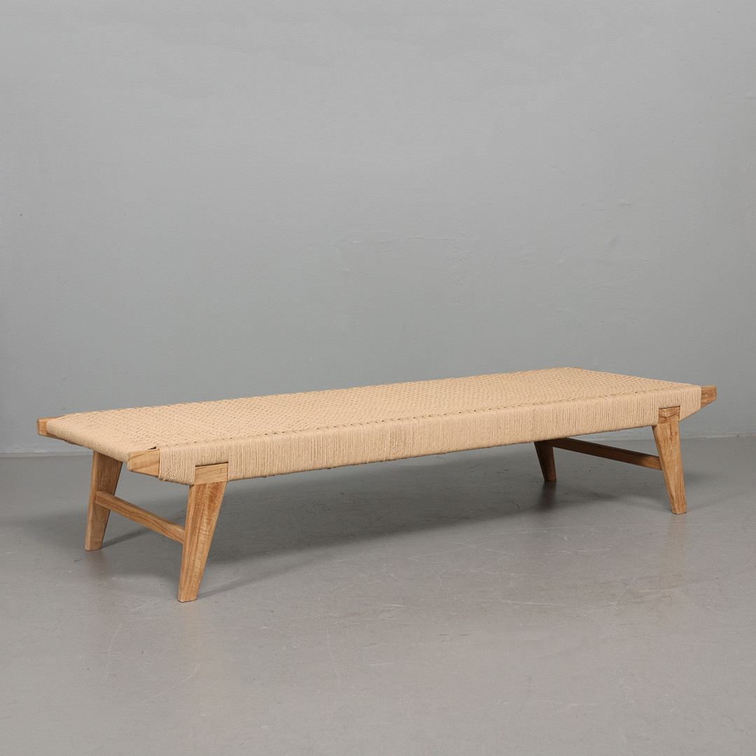 3014408. DAGBEDD, i teak med repflätning, samtida.