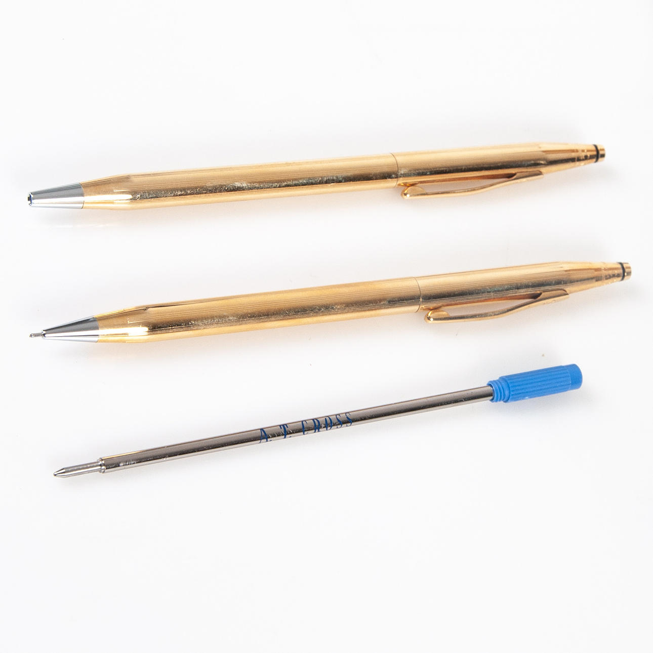 3015098. PENNSET CROSS. 2 st, förgyllda med 18K guld.