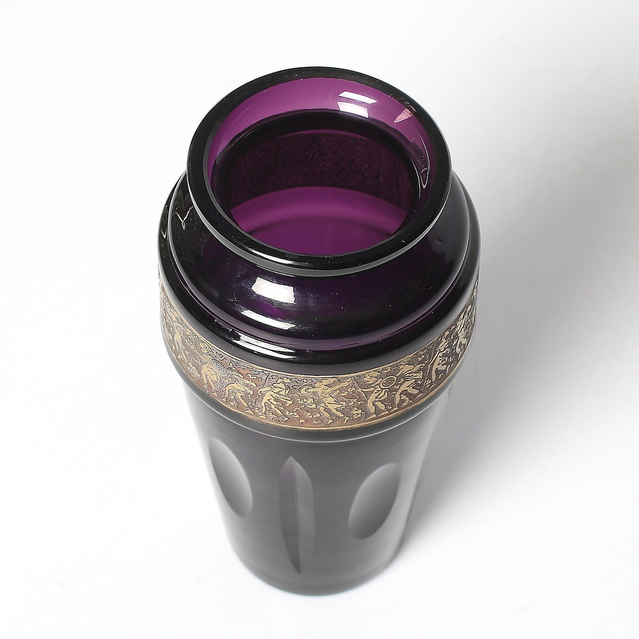 Lila glasmassa, förgylld bord. Höjd 16 cm.