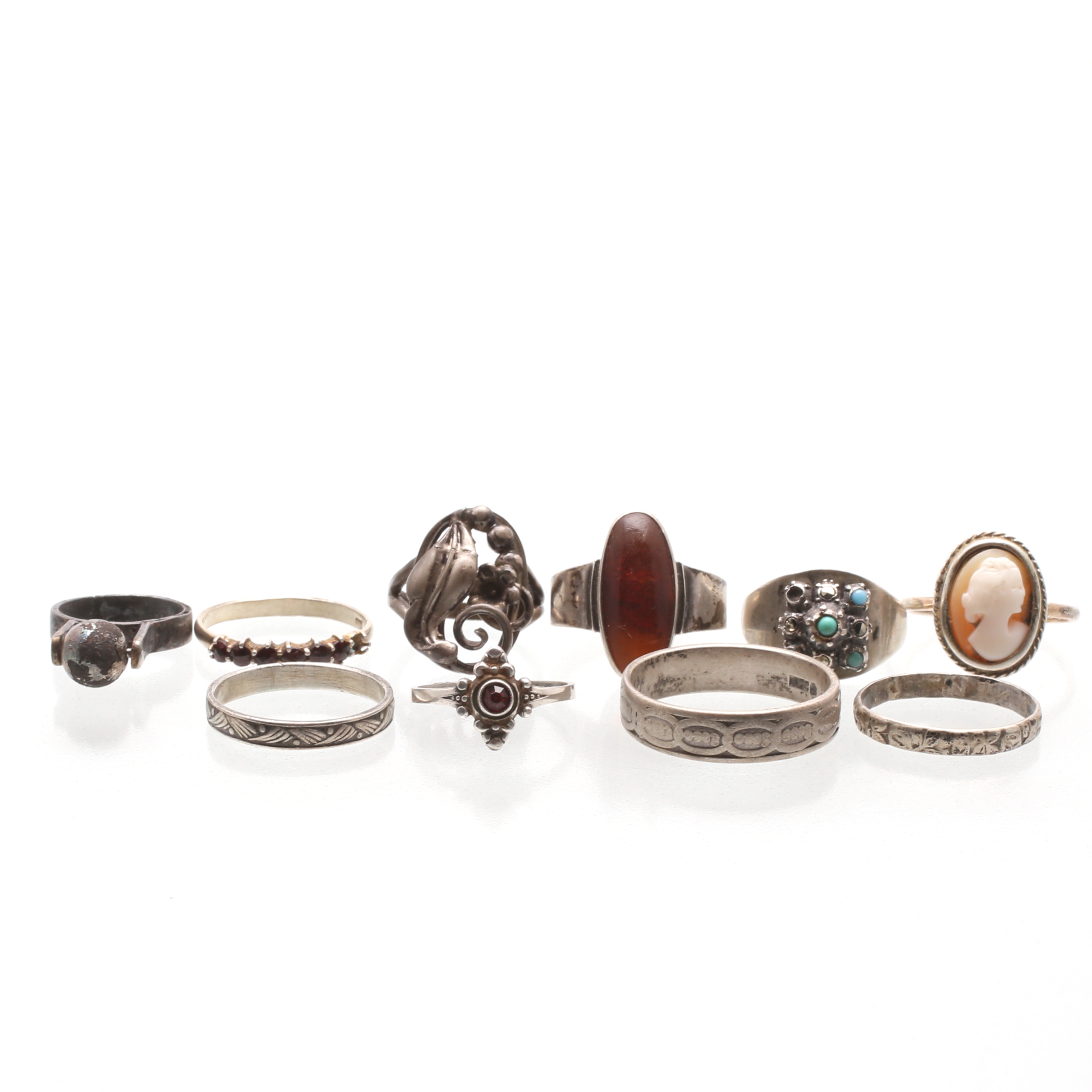 301589. SILVERRINGAR, 10 st, totalvikt ca 32 gram.