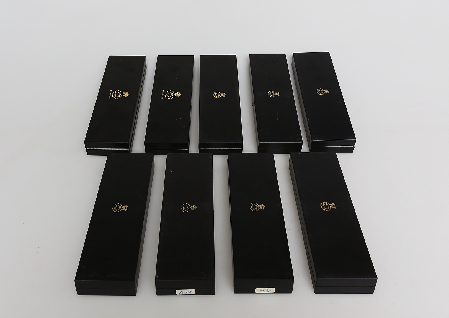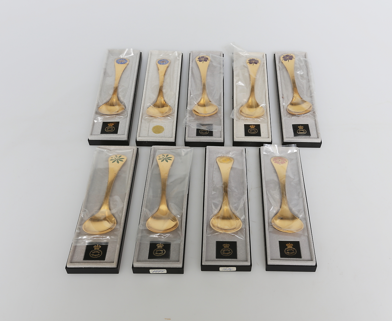 301598. GEORG JENSEN. Årsskedar, 9 st, silver.