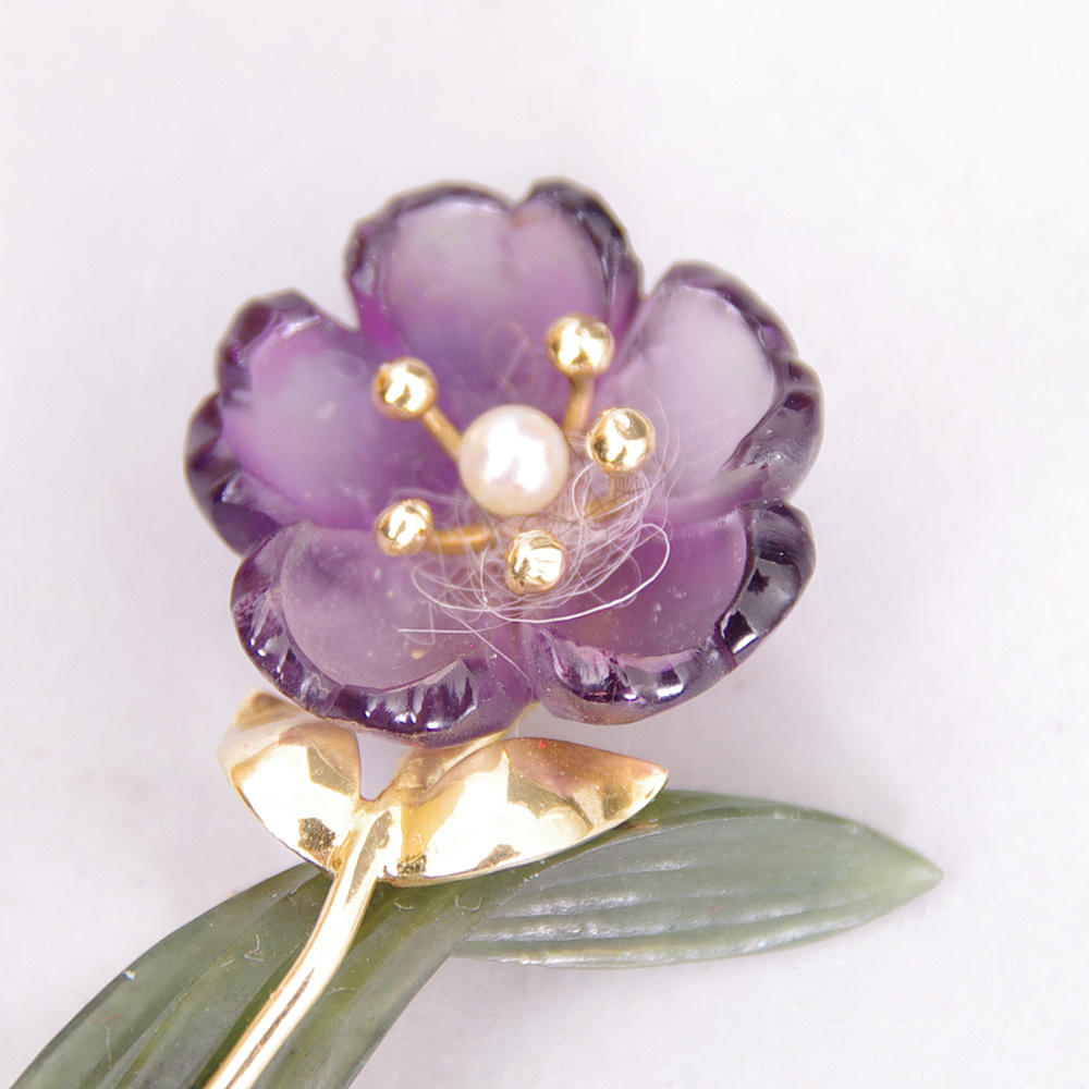 BROSCH, blomma infattad i 18K guld.
