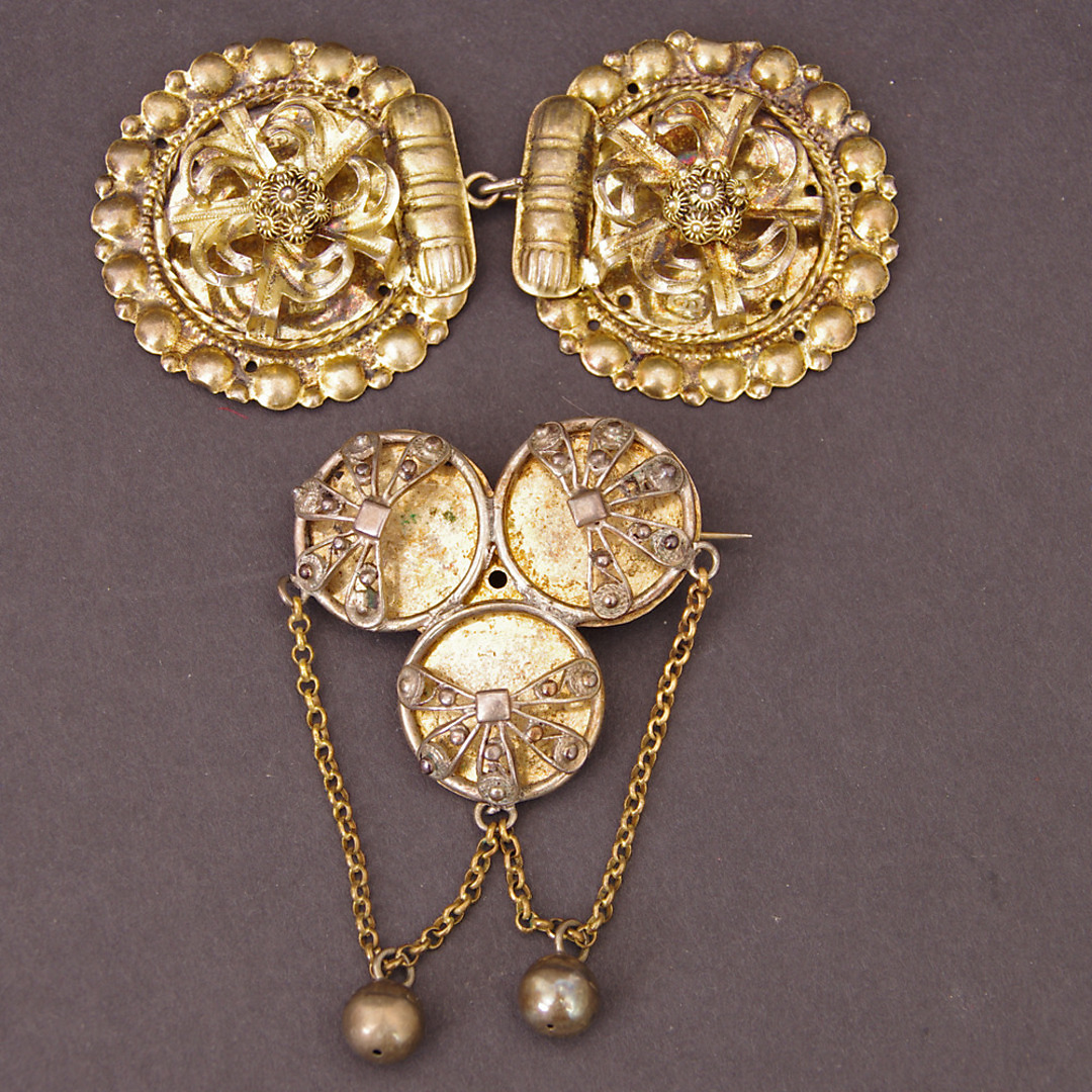 301622. BROSCH SAMT DRÄKTSPÄNNE, silver.
