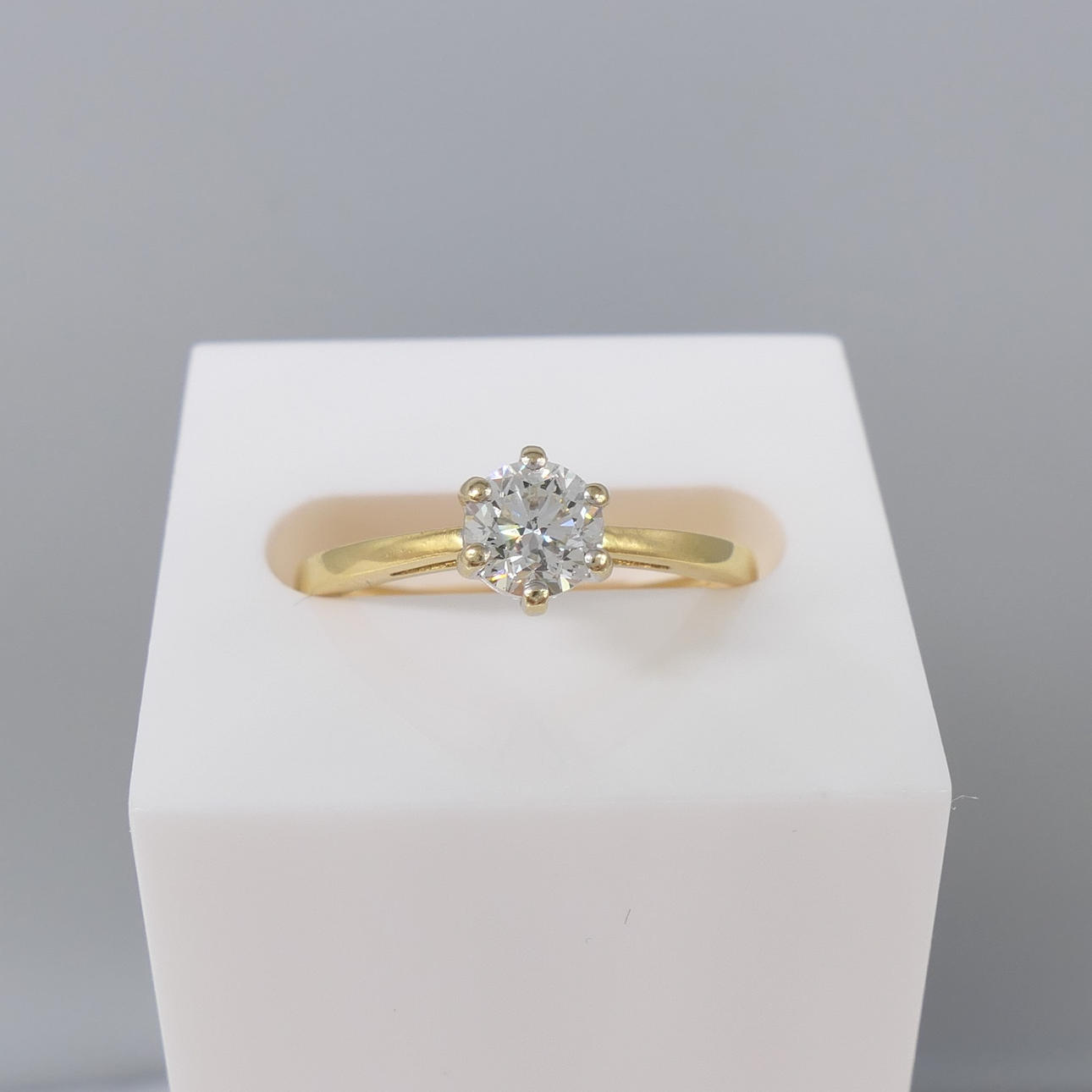 RING, 18k gult och vitguld 0.66 karat rund briljantslipade diamanter, kloset. Denna ring levereras med ett World Gemological Institute-certifikat.