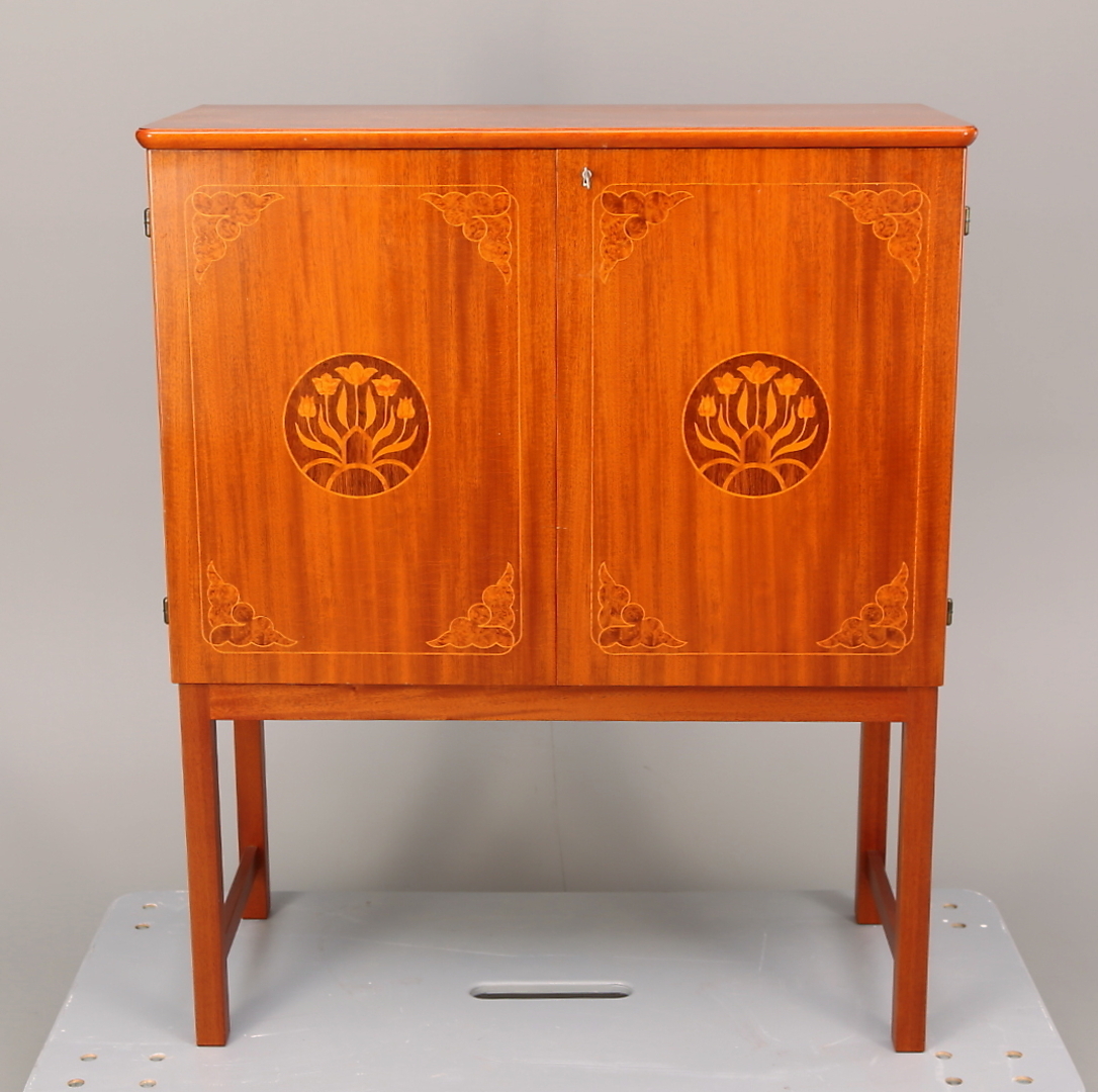 302232. BARSKÅP intarsiadekor, 1900-talets andra hälft.