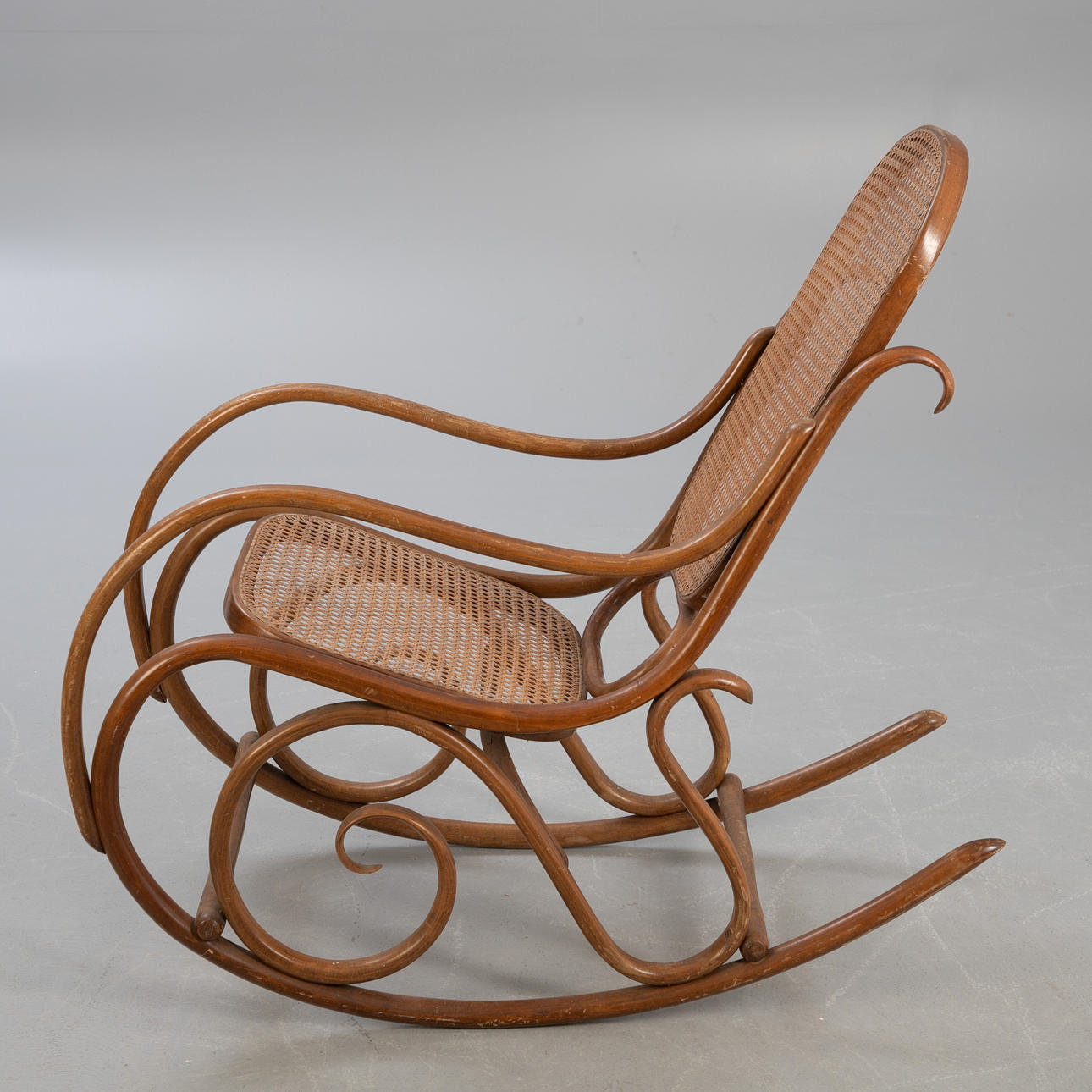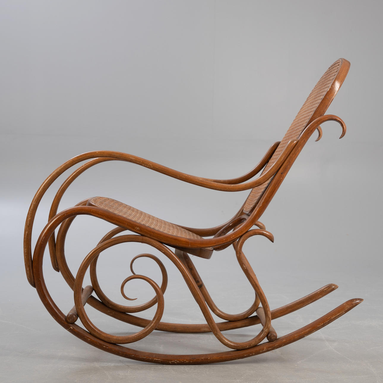 Bentwood ram gungstol, wiensk rottingsits och ryggstöd.