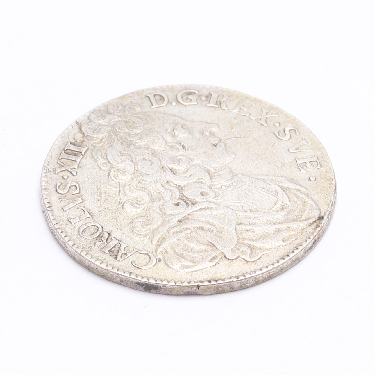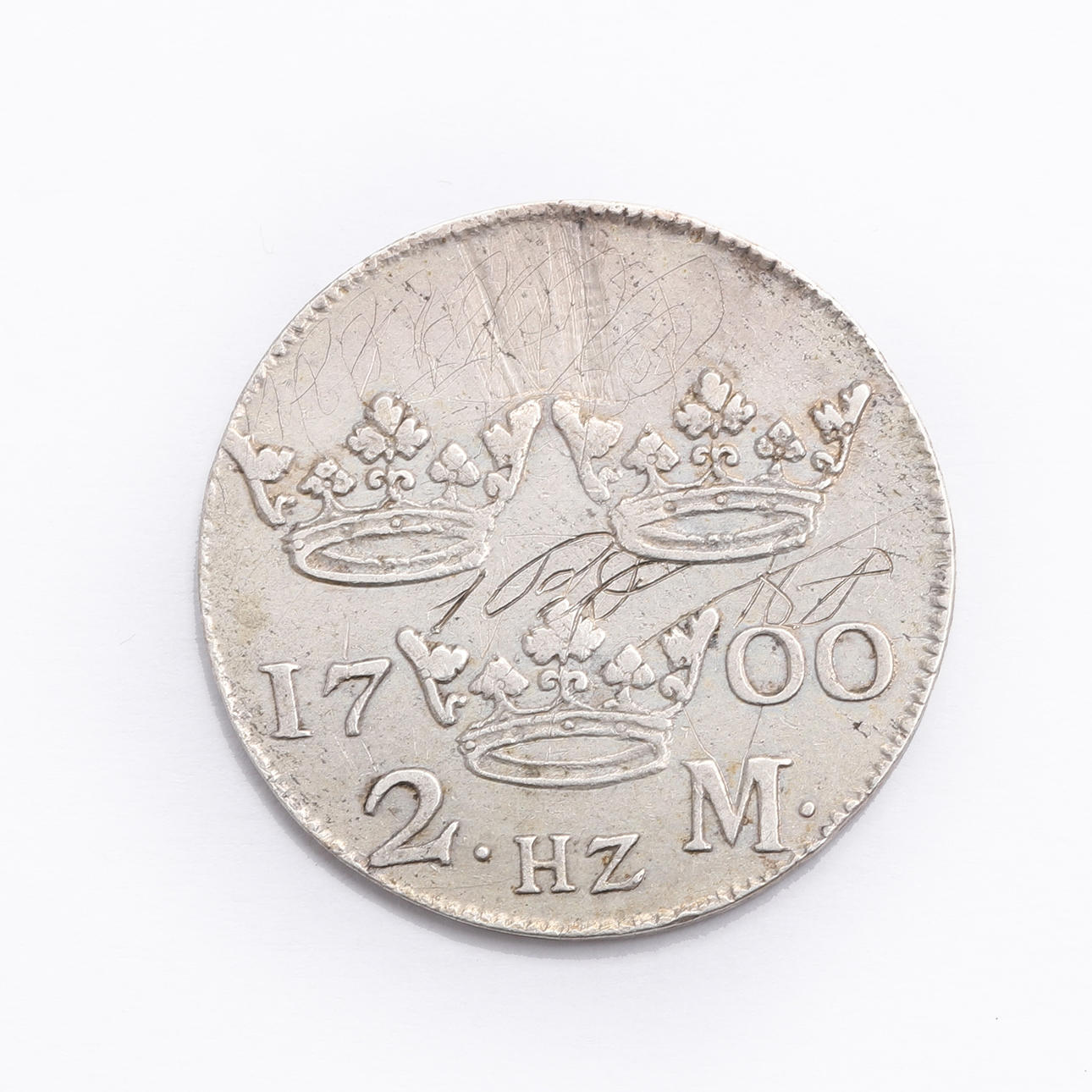 KM# 314 Finhetsgrad 0.6940 Ø 30 mm, vikt 10,20 gram. Advers: Byst av Karl XII. Revers: Tre kronor.
