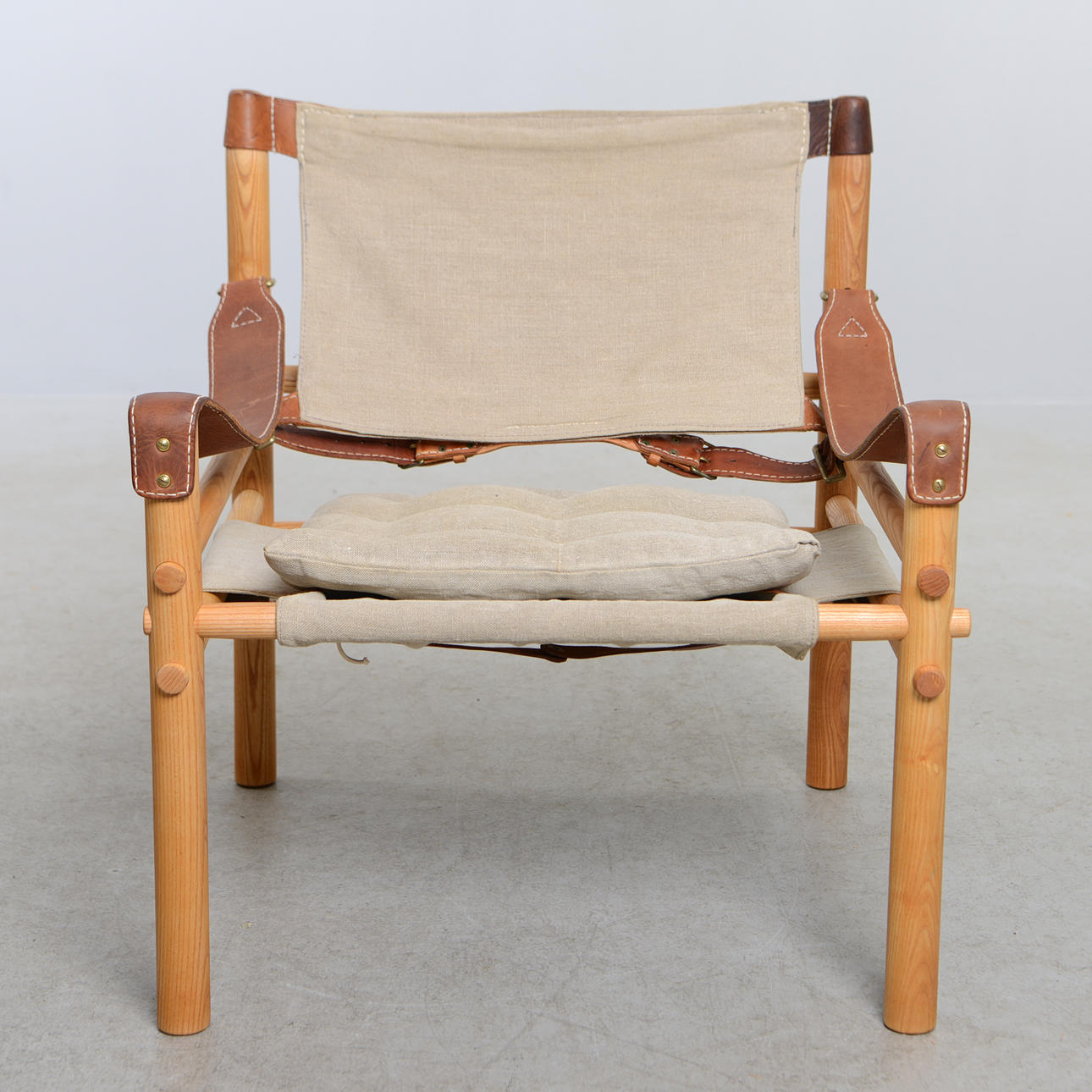 Ask. Canvas samt skinn. Bredd 66 cm. Höjd 72 cm. Sitthöjd ca 40 cm.
