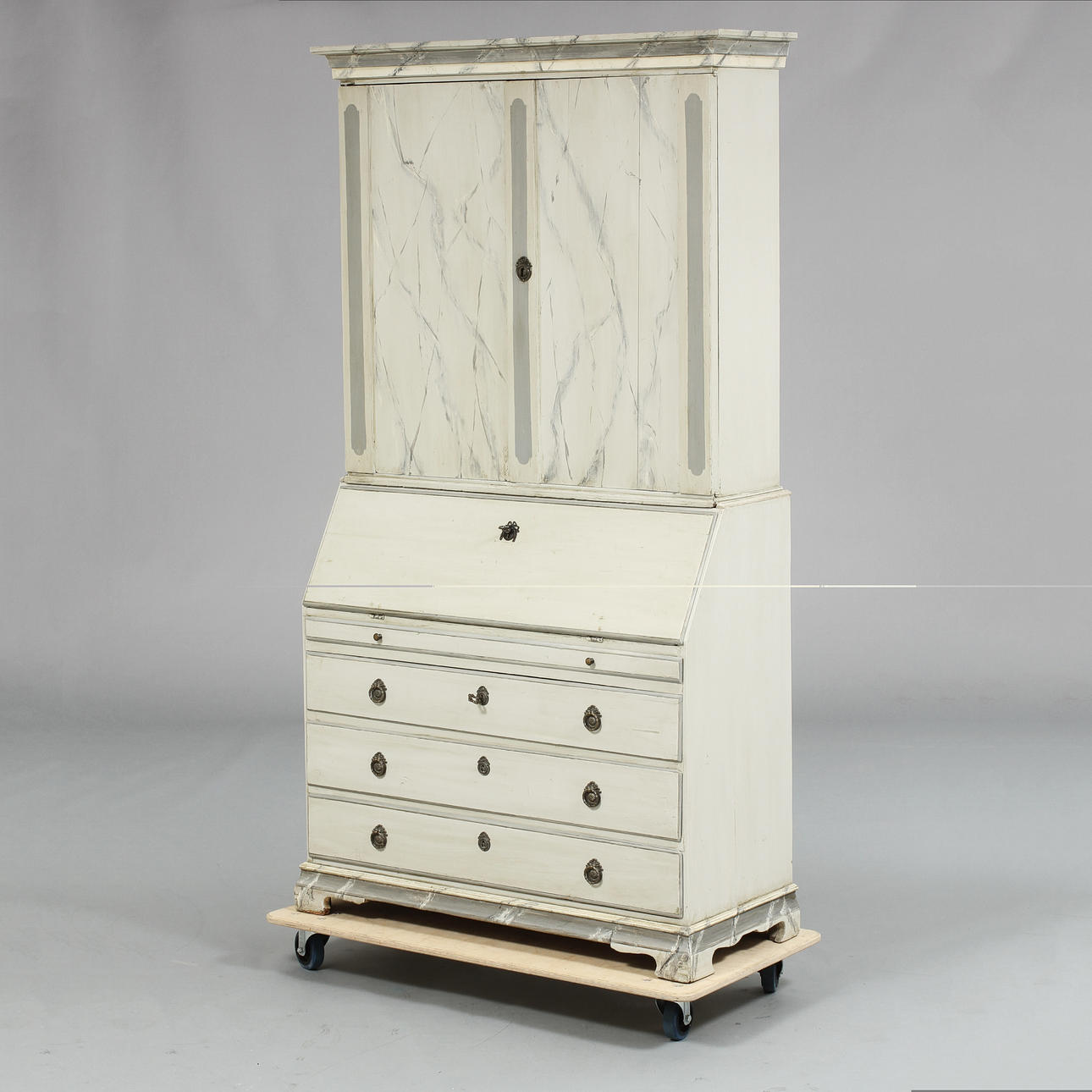 Grålackerad i marmorimitation. Längd 112, bredd 45, höjd 206 cm.