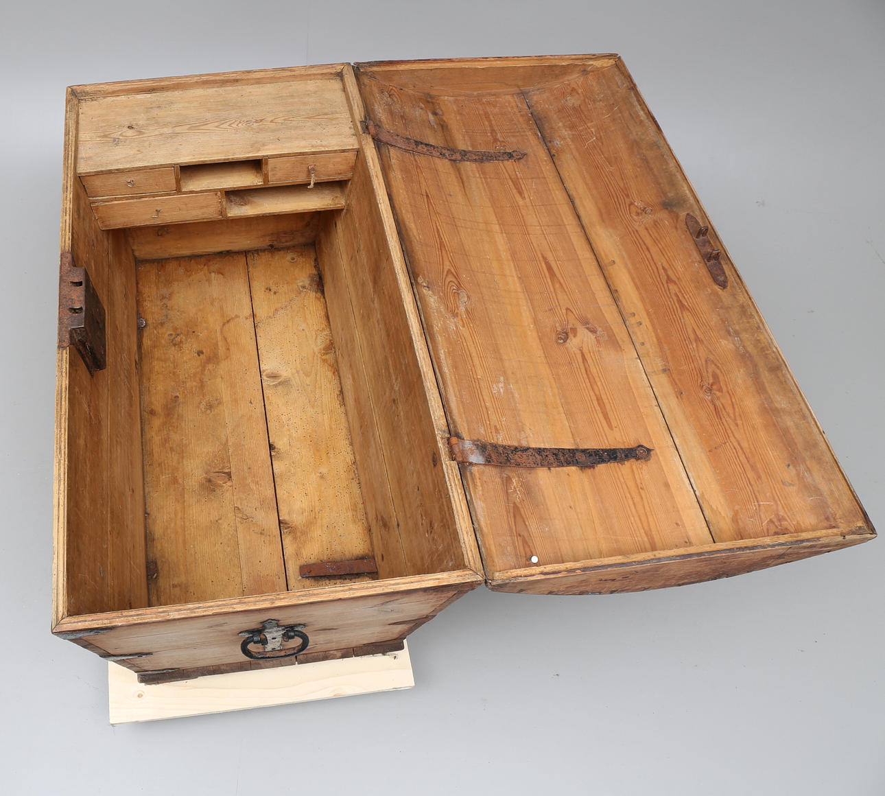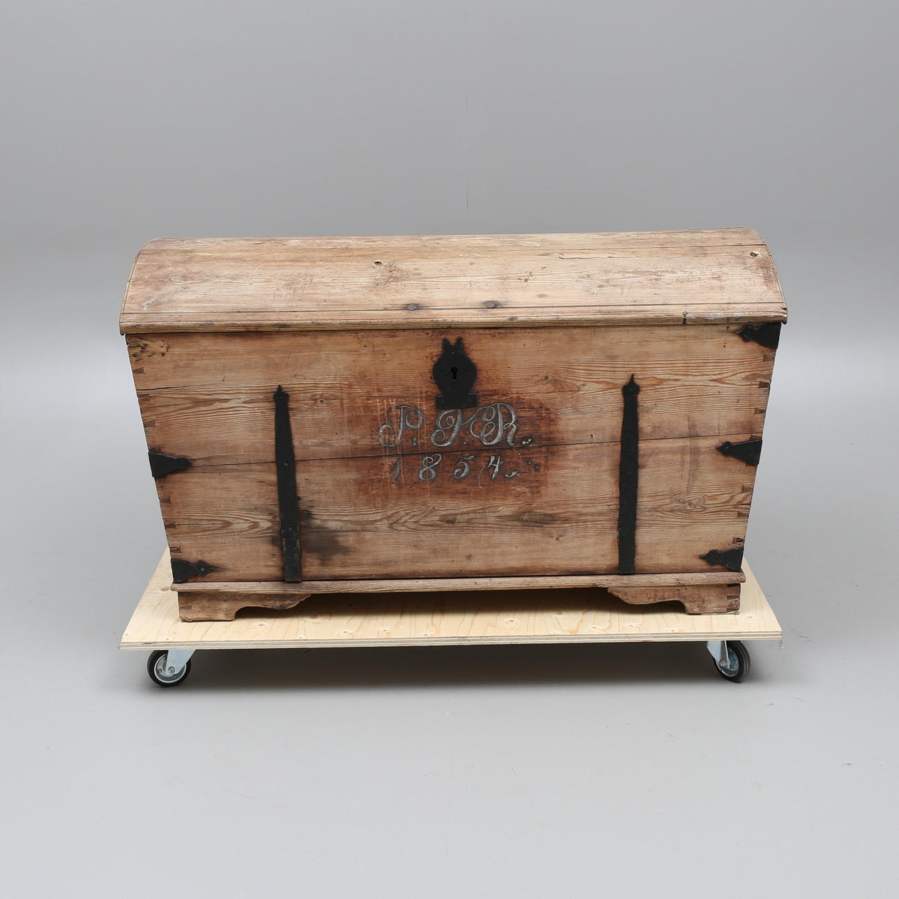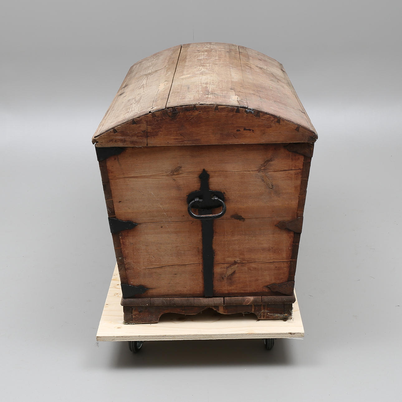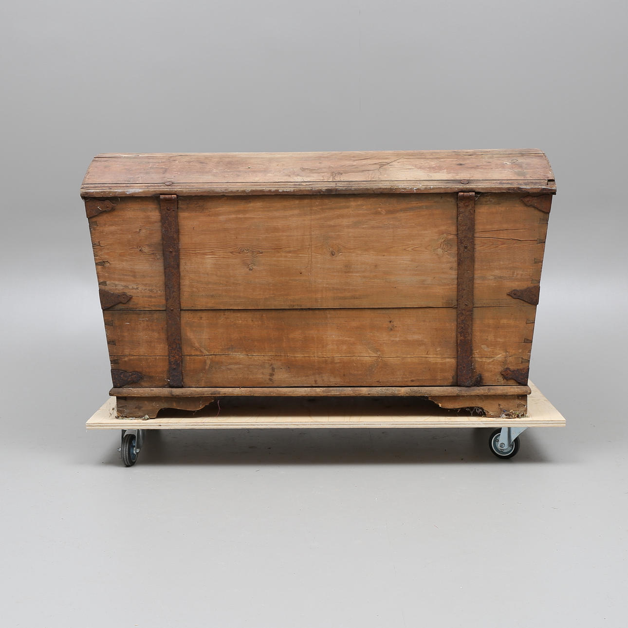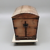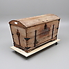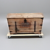 Trä med järnbeslag. Längd 116 cm, bredd 61 cm, höjd 67,5 cm.